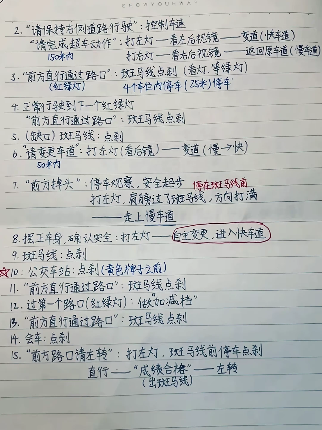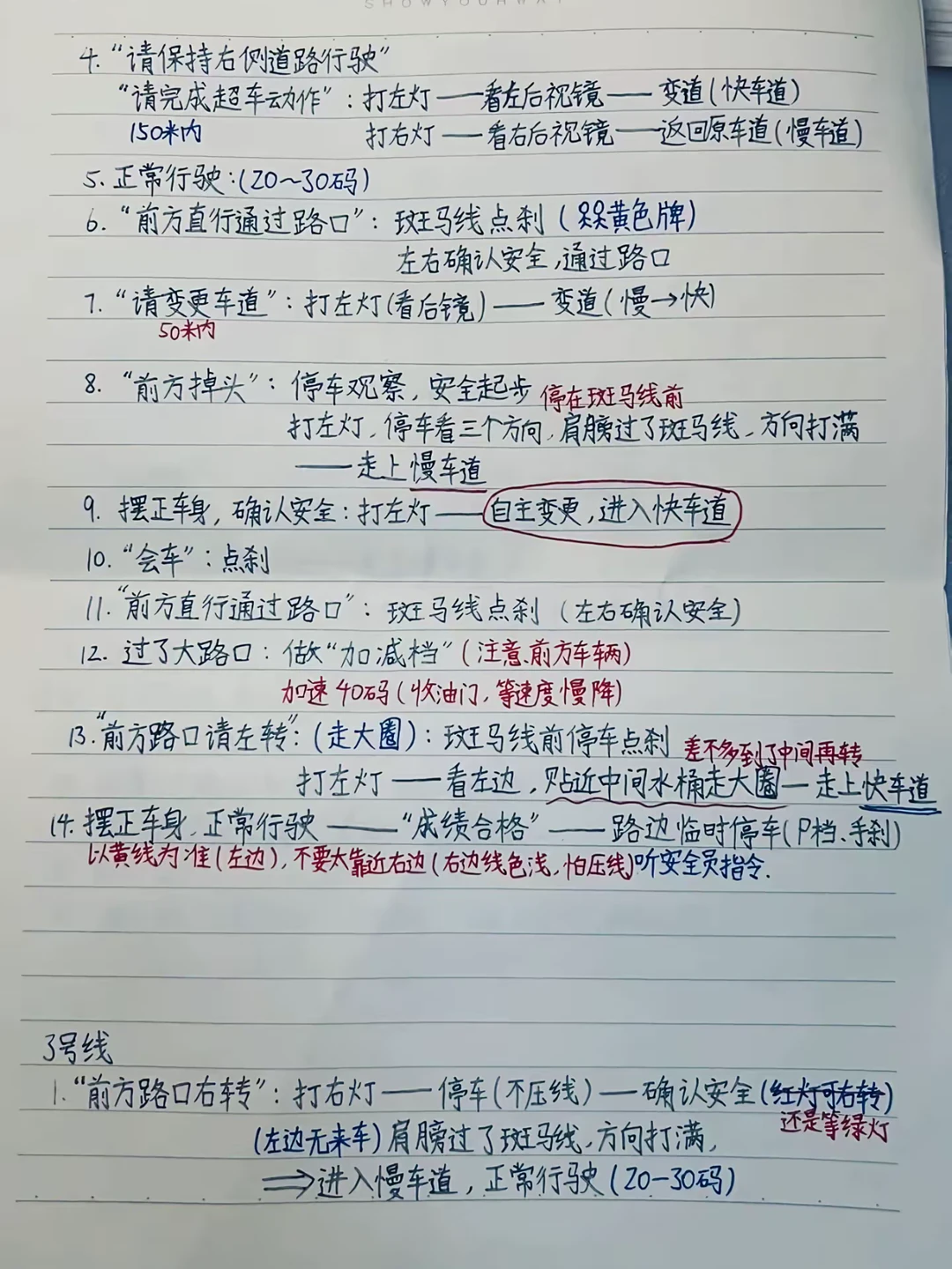 ⑤前方通过路口