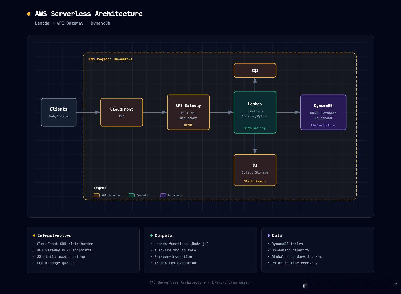 - AI 自动生成暗黑主题架构图,语义化颜色编码(前端青色、后端绿、数据库紫色等);- 单文件 HTML/SVG 输出,无依赖,浏览器直接打开,支持响应式缩放;- 纯文本描述即可生成,支持组件、连接、云服务、微服务等复杂架构;- 实时迭代优化,可让 Claude 修改布局、添加组件或调整样式;- 专业排版设计,JetBrains Mono 字体,带网格背景和智能层级箭头;- 示例模板丰富,覆盖 Web 应用、AWS Serverless、Kubernetes 微服务等。
