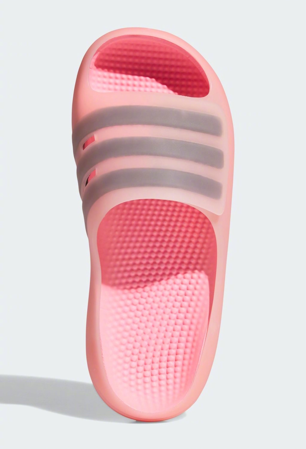 阿迪推出采用合成纤维材料制成的全新Adislide 凉拖,带有半透明的外观特质并搭配丰富的色彩,同时带有魔术贴可调节设计,鞋垫带有凸起颗粒的按摩设计,鞋底的凸起纹路也增加了抓地效果🎨