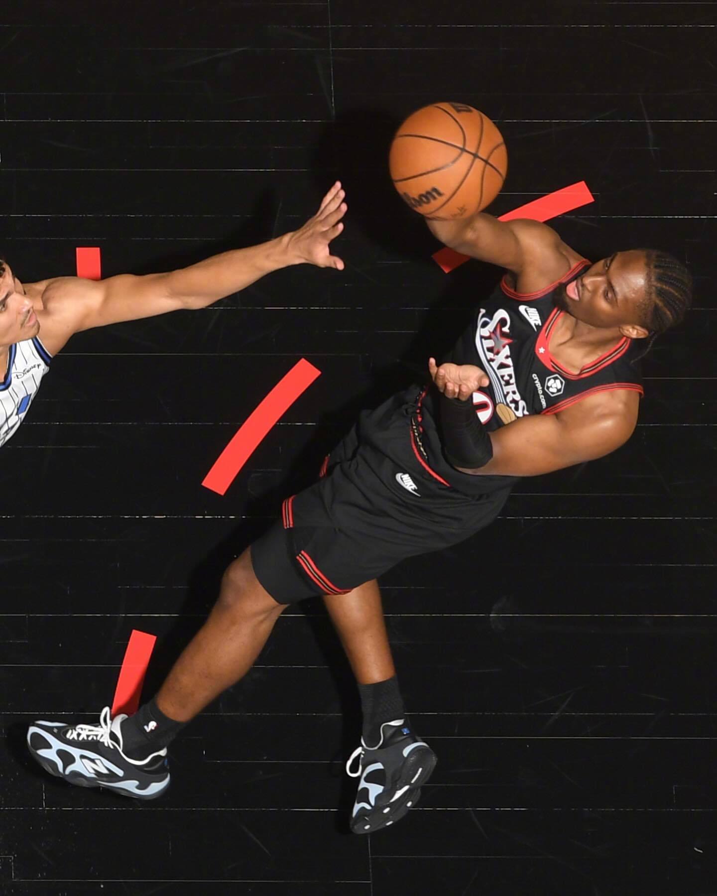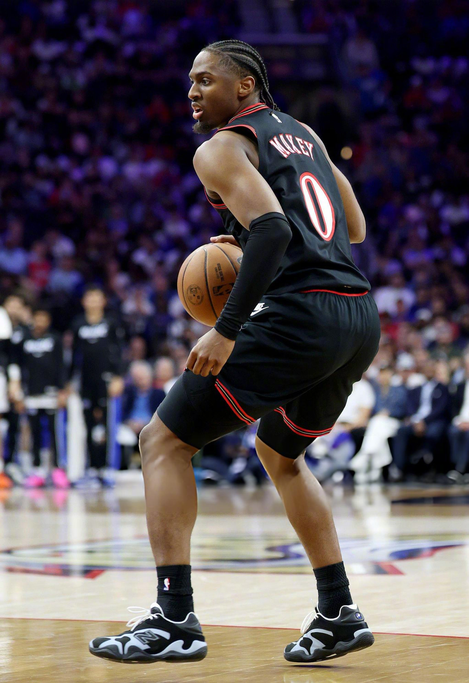 泰瑞斯·马克西的首款个人签名鞋 Maxey V1 ,围绕移动、速度和控制几个维度,波浪形的线条+圆润的外观,采用了皮革、织物、绒面革和皮革纹热压材质,中底搭载FuelCell缓震泡棉,主打轻快灵活相应的定位,预计今年晚些时候到来,定价为130美刀。