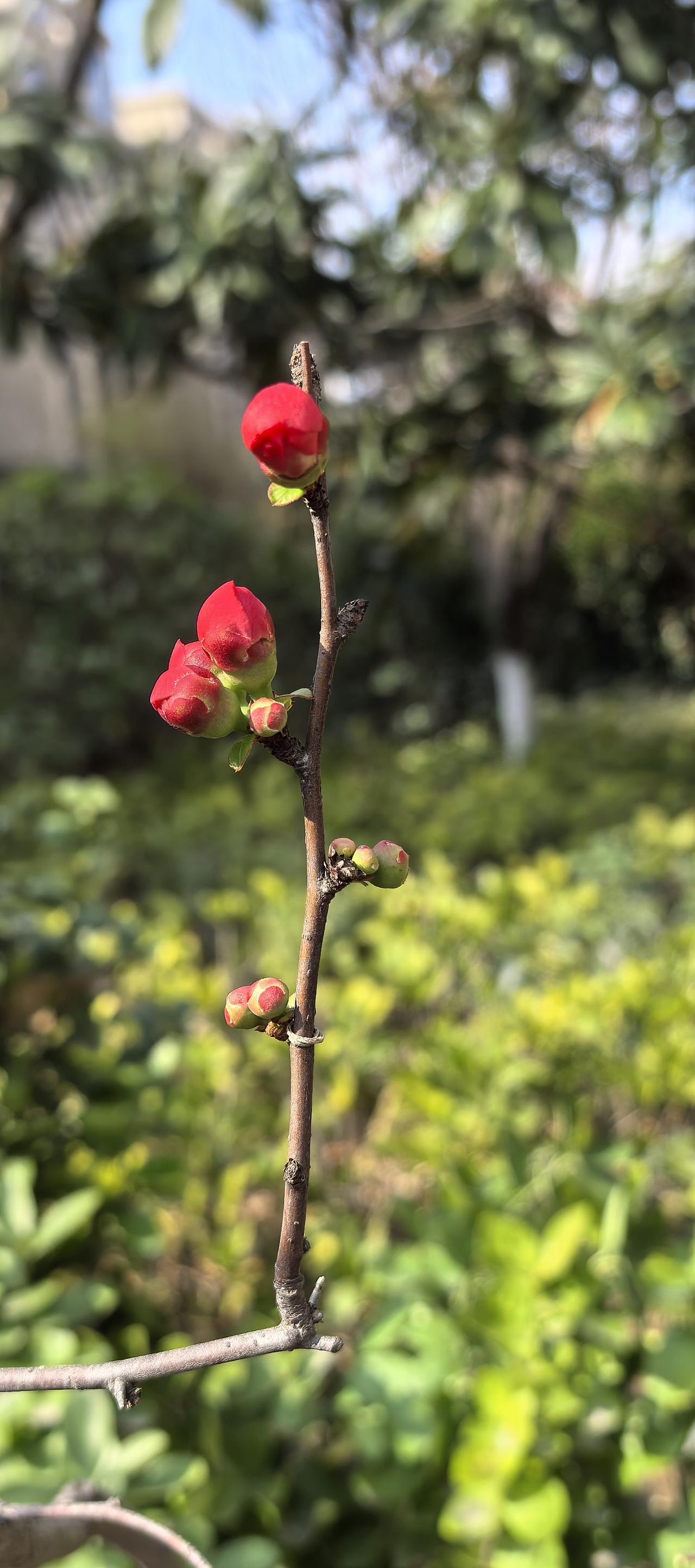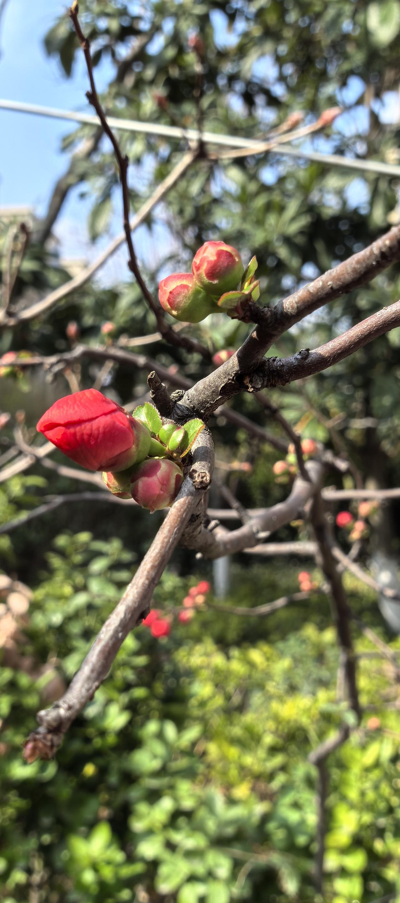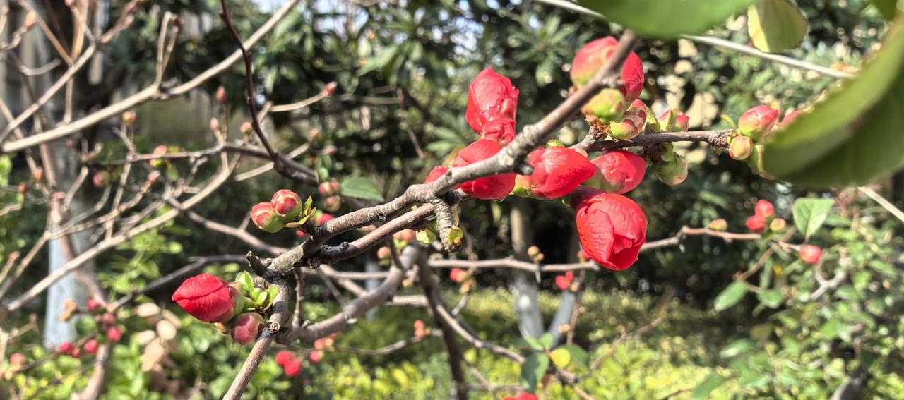 嫣红的花苞顶开寒意,把春天直直戳在枝头。
