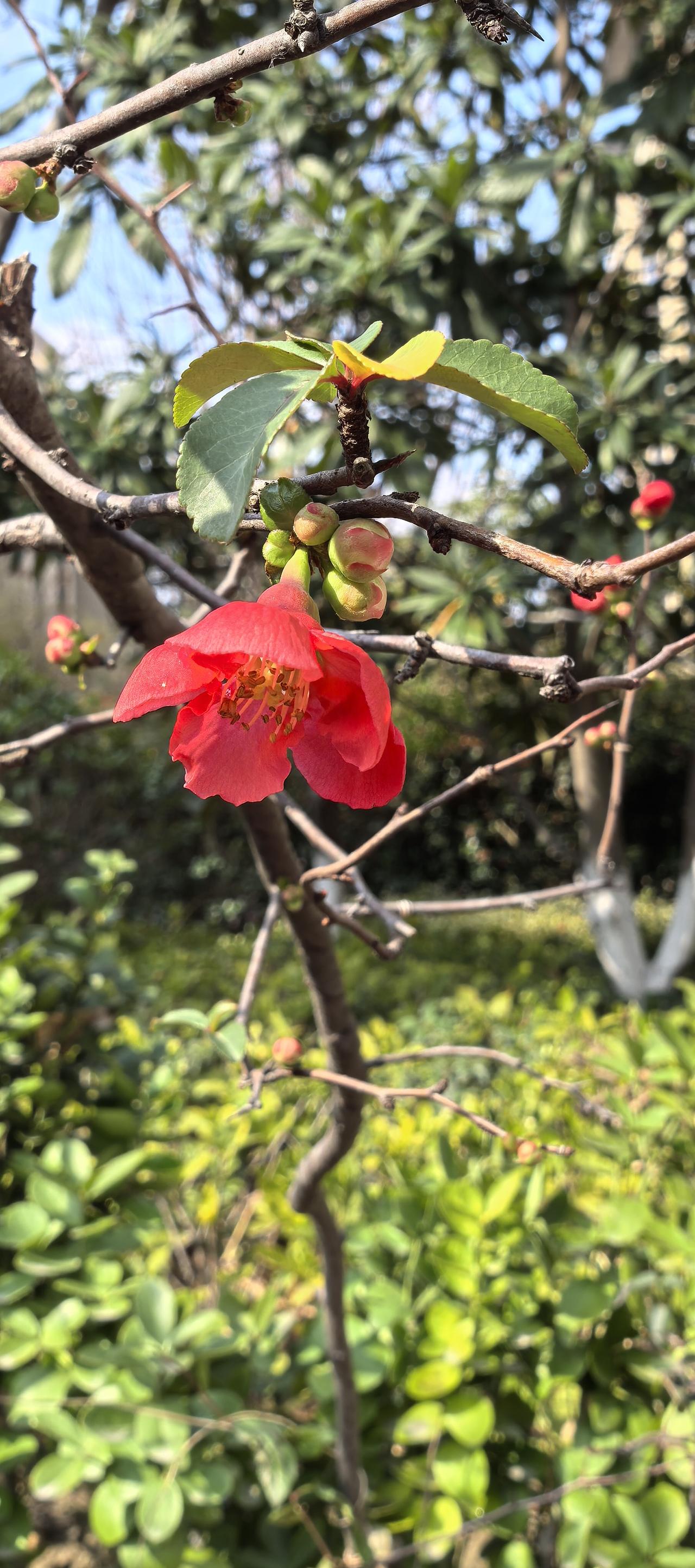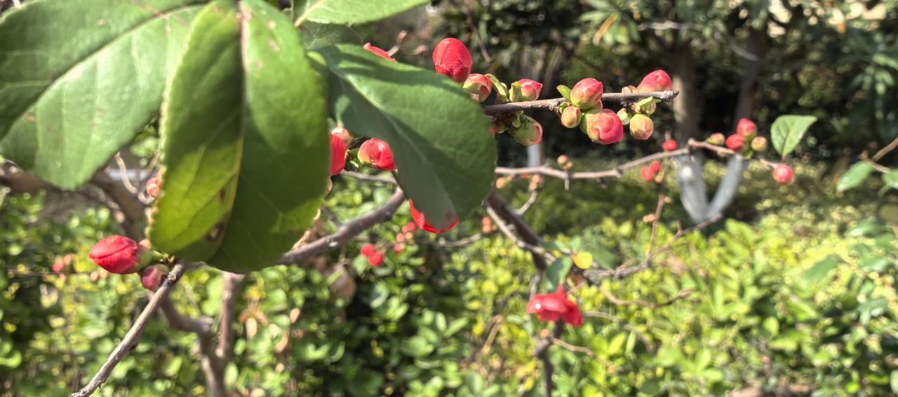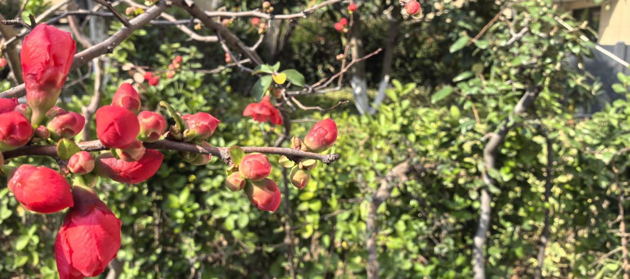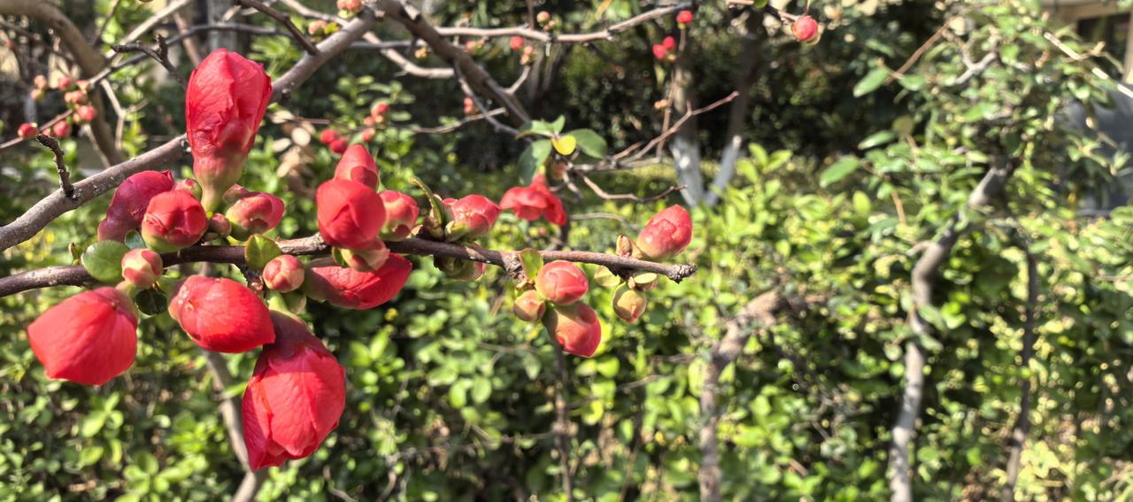 嫣红的花苞顶开寒意,把春天直直戳在枝头。