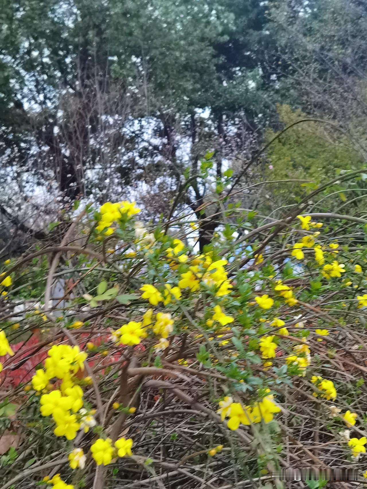 我想拍照留住它的芳华,可不容易。它枝条伸向河里,花朵也对着河,好不容易拉个枝条过来,拍出来却没自然状态好看,估计它不乐意“被强扭”,只想默默芬芳。即便春雨不断,茶花惨兮兮,它却黄油油的,带着露珠越发娇美,花瓣还不见凋落,太让人喜欢啦!