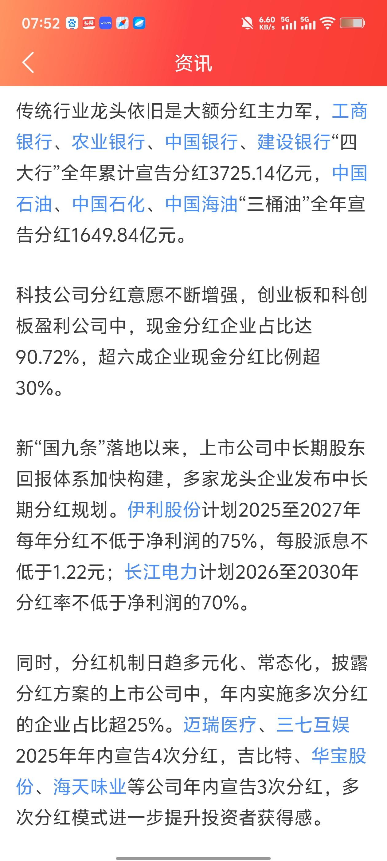 - 多次分红成常态:迈瑞医疗、三七互娱这些公司,一年分三四次红,真金白银提升投资者的获得感。