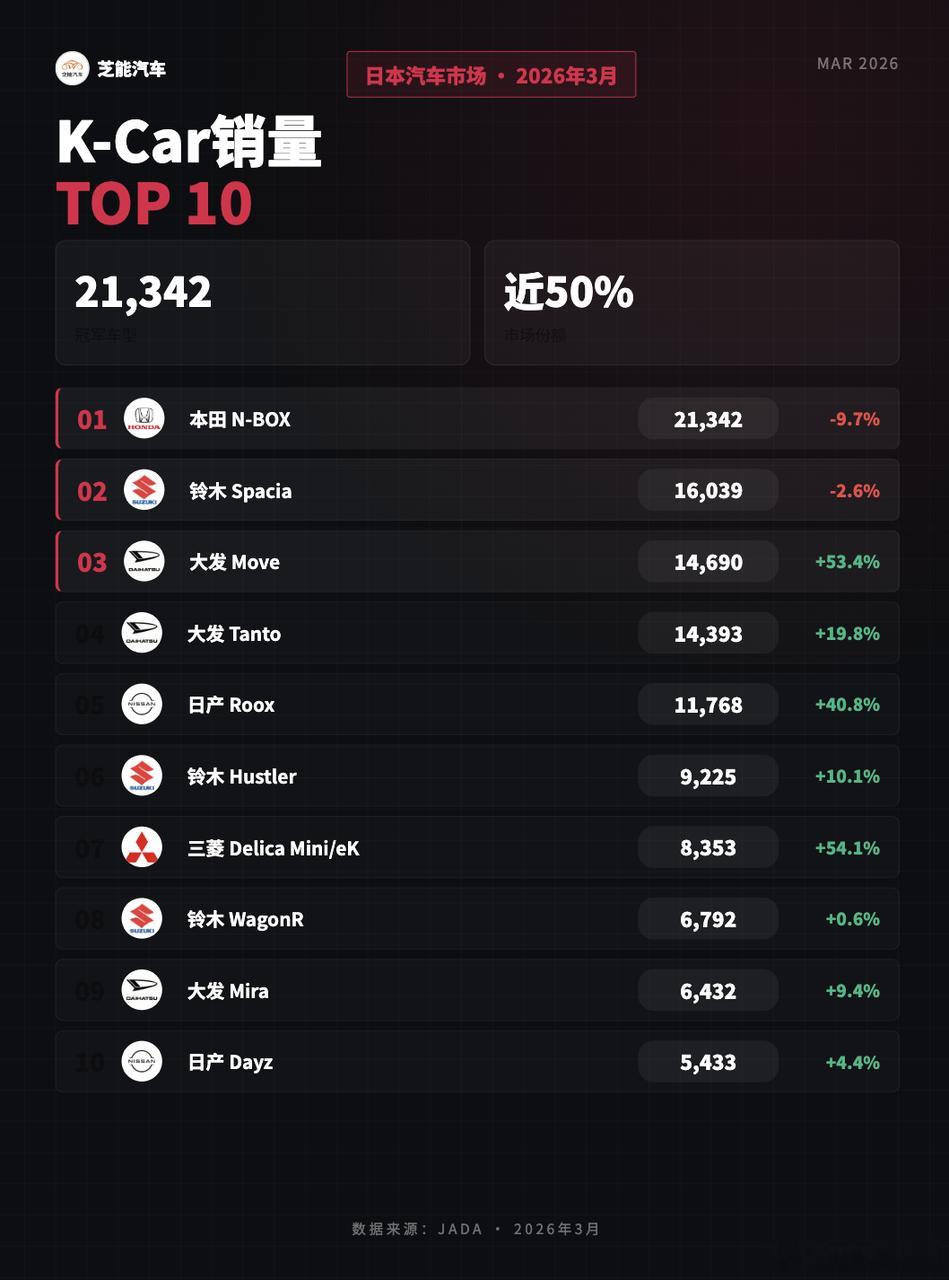 ◎ 大发(+24.3%)、三菱(+30.1%)依靠K-Car与性价比车型实现逆势增长;