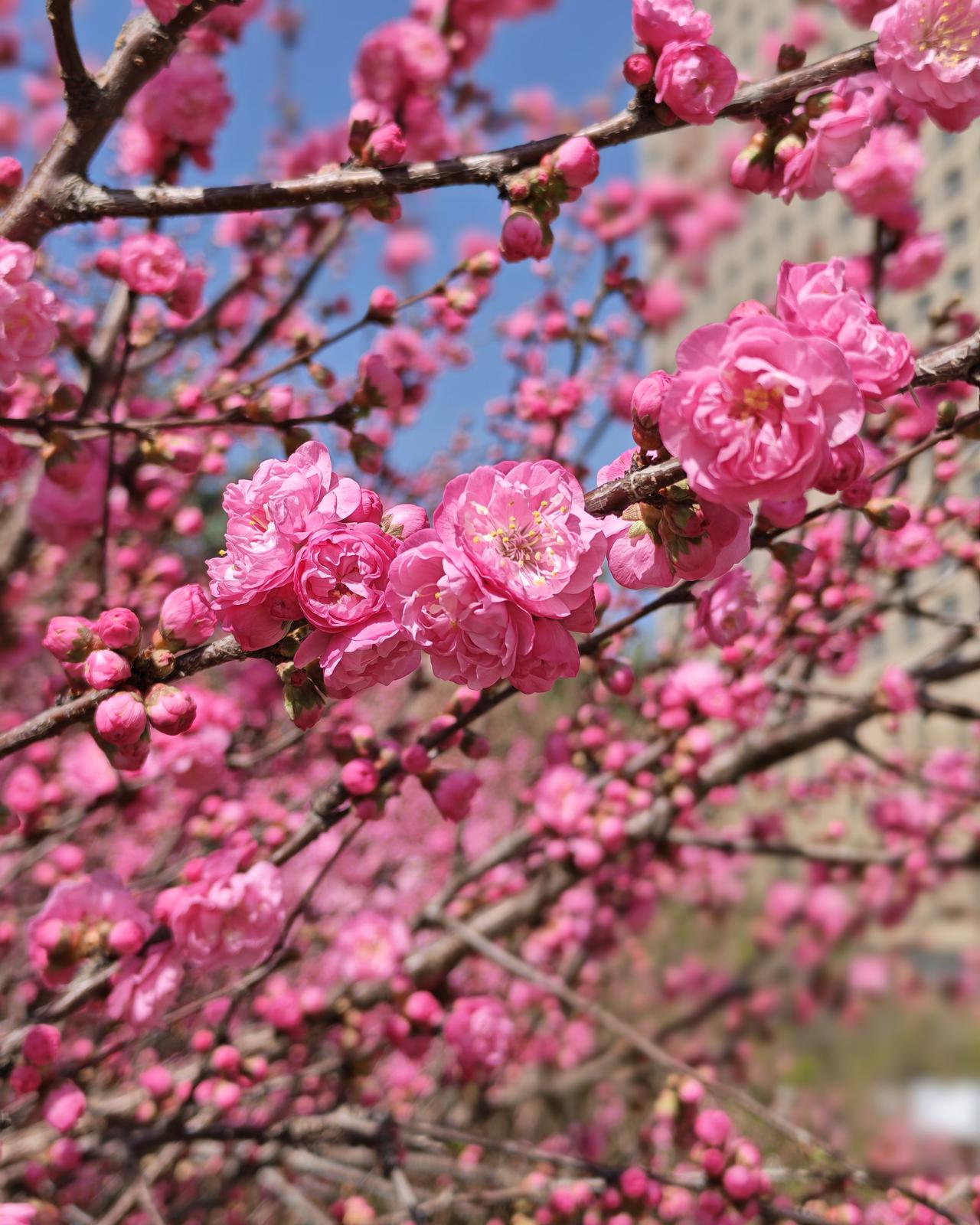 今天路过小草公园拍了几张照片,花开的很美天蓝花艳。
