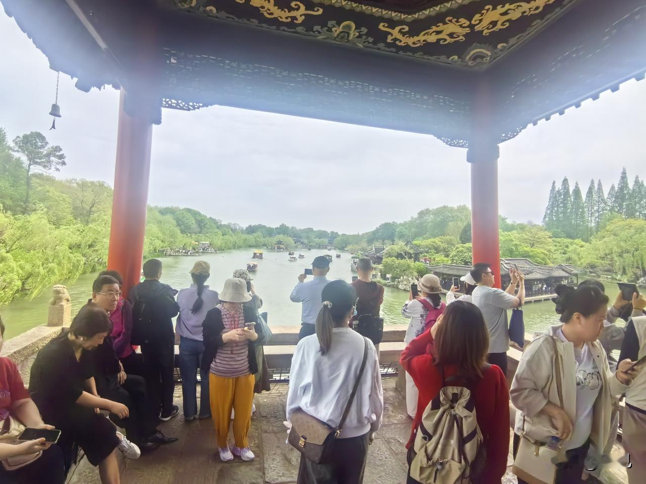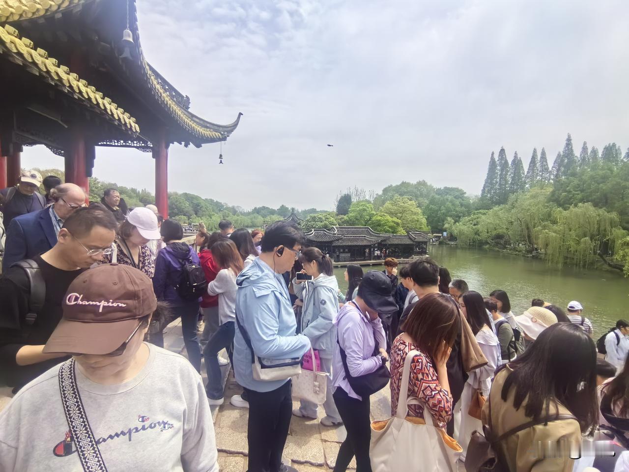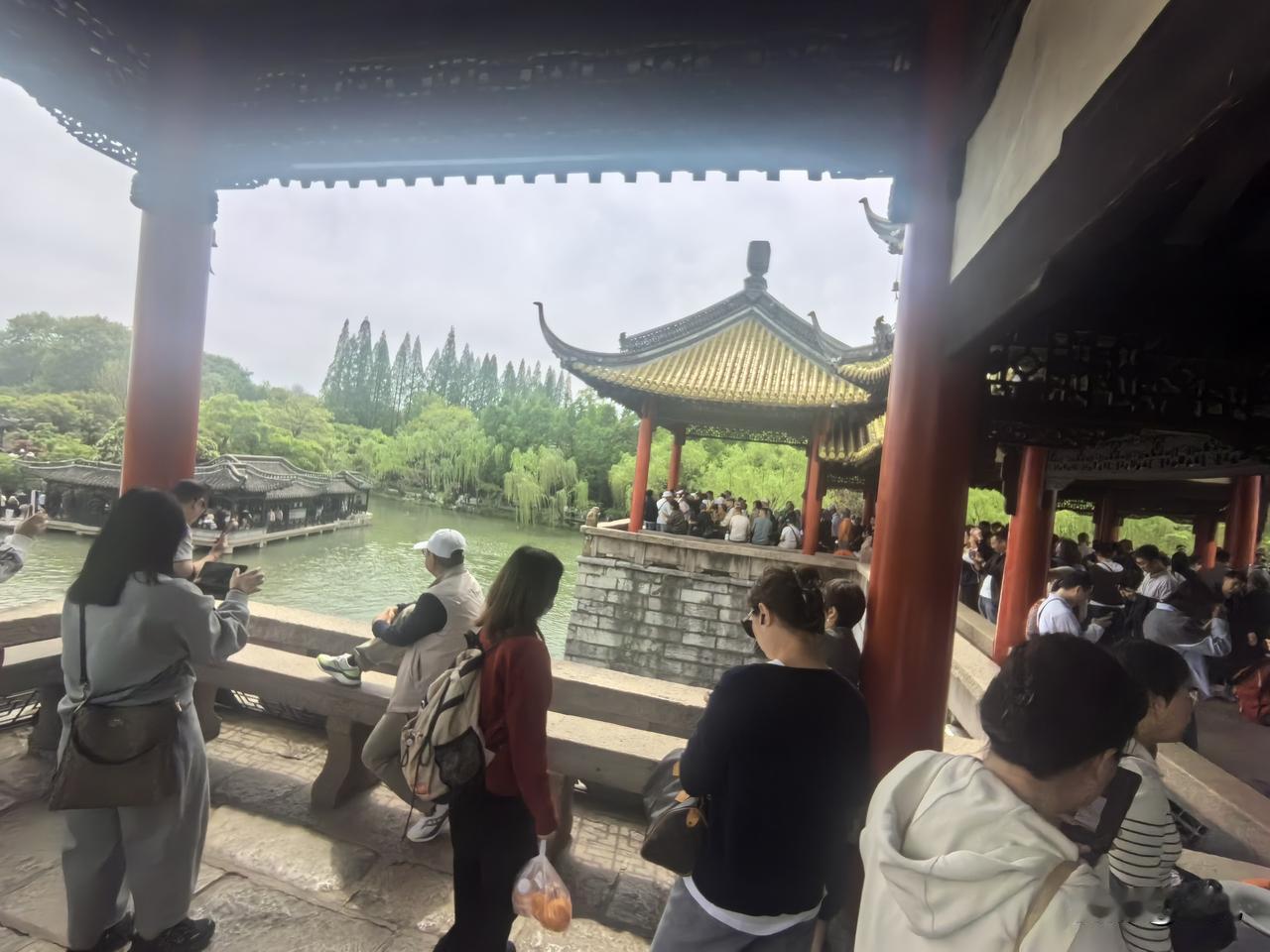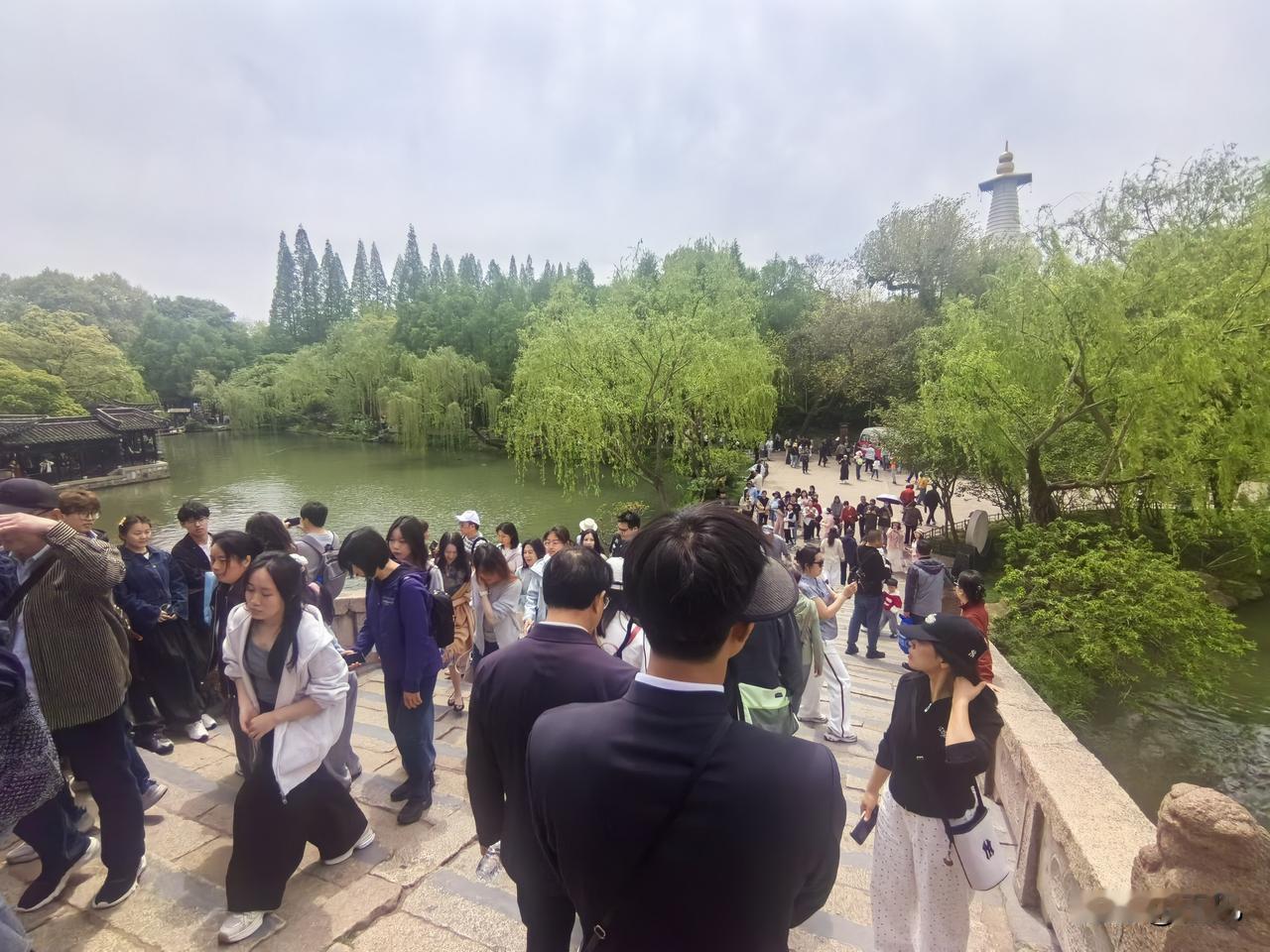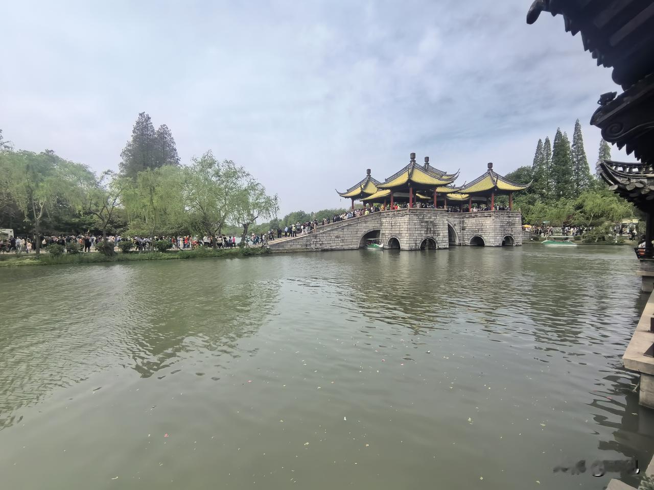 园内整整8个多小时,游玩一天才发现,就因为当年大诗人是三月下的扬州,就都赶在三月来,真的是人山人海挤的水泄不通。五亭桥上摩肩接踵,二十四桥畔寸步难行,连钓鱼台那个经典的“框景”视角里,框住的不是白塔与五亭桥的绝美构图,而是攒动的人头。为了拍一张没有路人的照片,我们几乎要等到景区清场。腿脚酸胀自不必说,连想找个地方坐下歇歇,长椅也早已被占满。