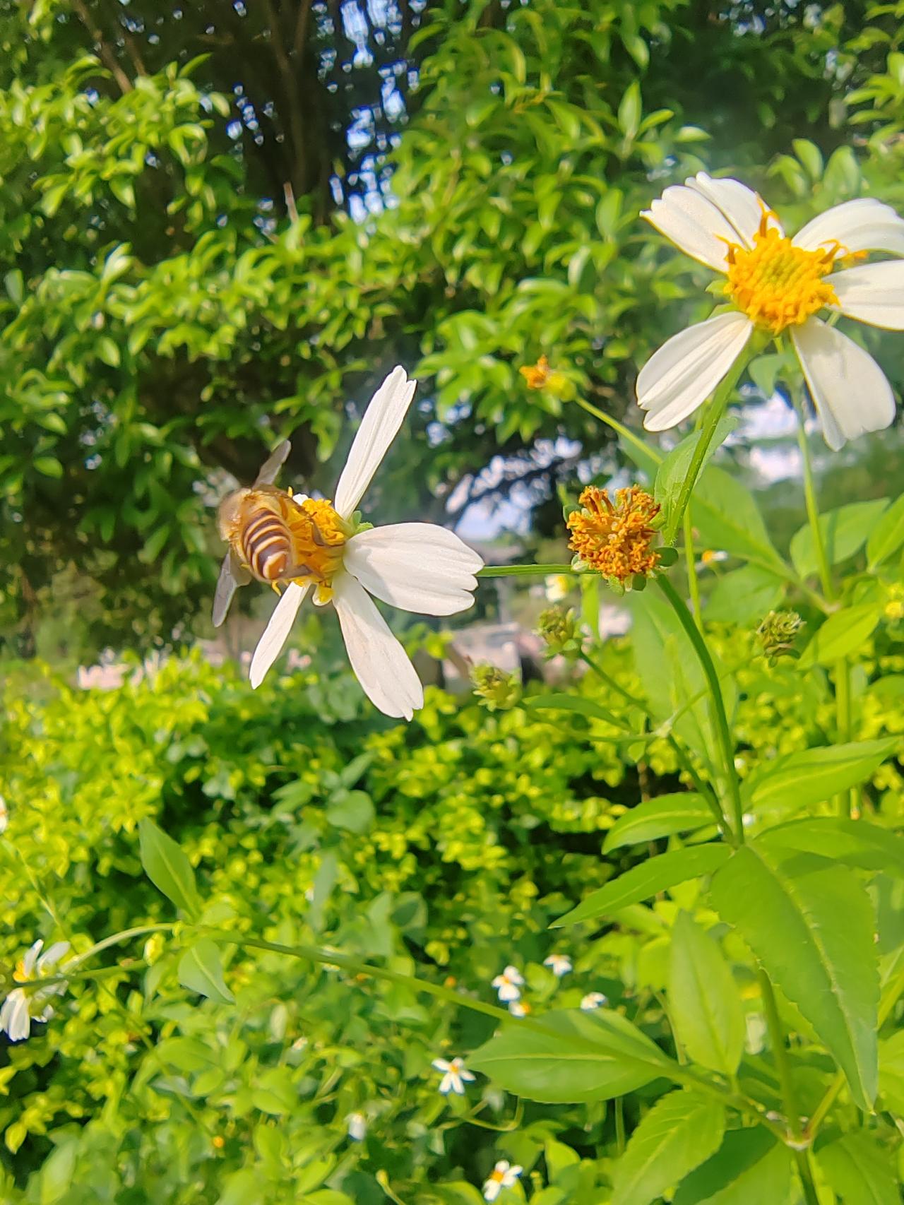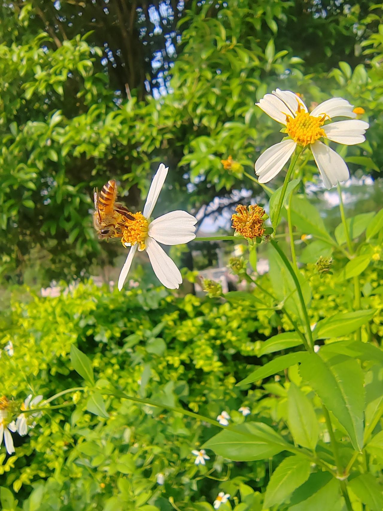 带几个小朋友去公园玩,没想到一路低头拿着手机看,完全没有心思留心身边的春意盎然。于是想出了一个办法,看谁拍的花朵最漂亮。最后分别选了这三张,都是蜜蜂采蜜的情景。一时间难以分出哪一个比较漂亮。