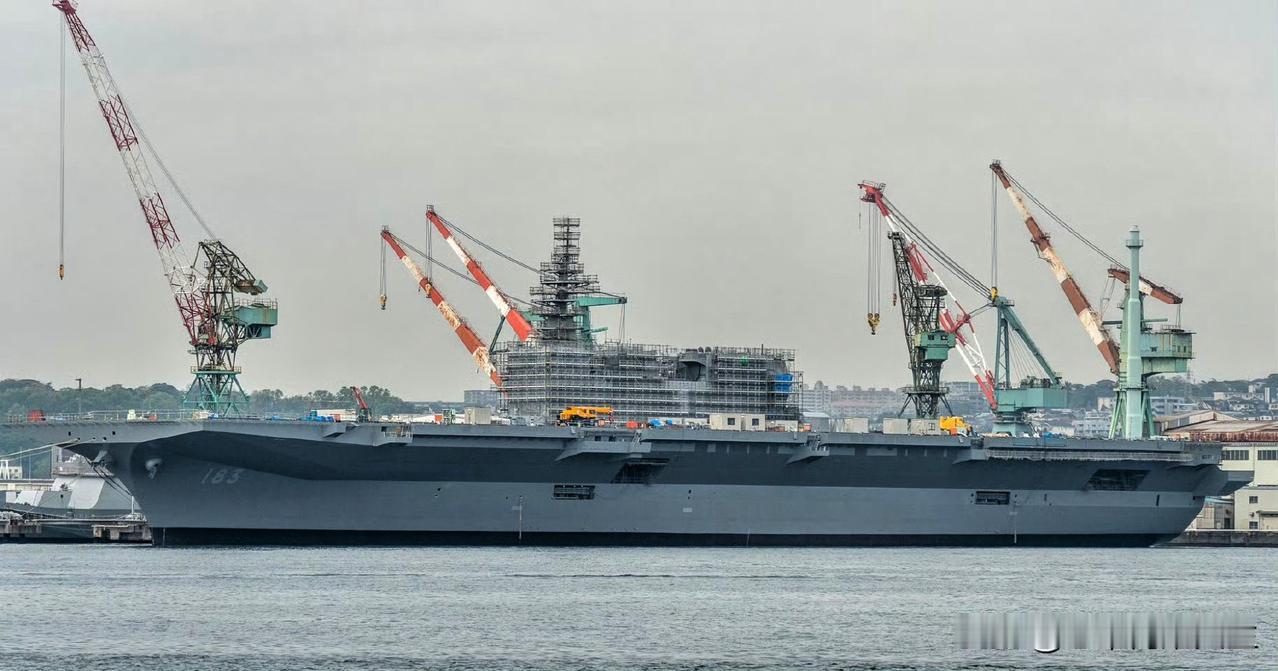 小日子这疯狂备战的速度不得不防啊!画面里就是正在改造升级的小日子出云号准航母。仔细看这艘满排2万多吨的军舰,其甲板舰岛被脚手架完全覆盖。