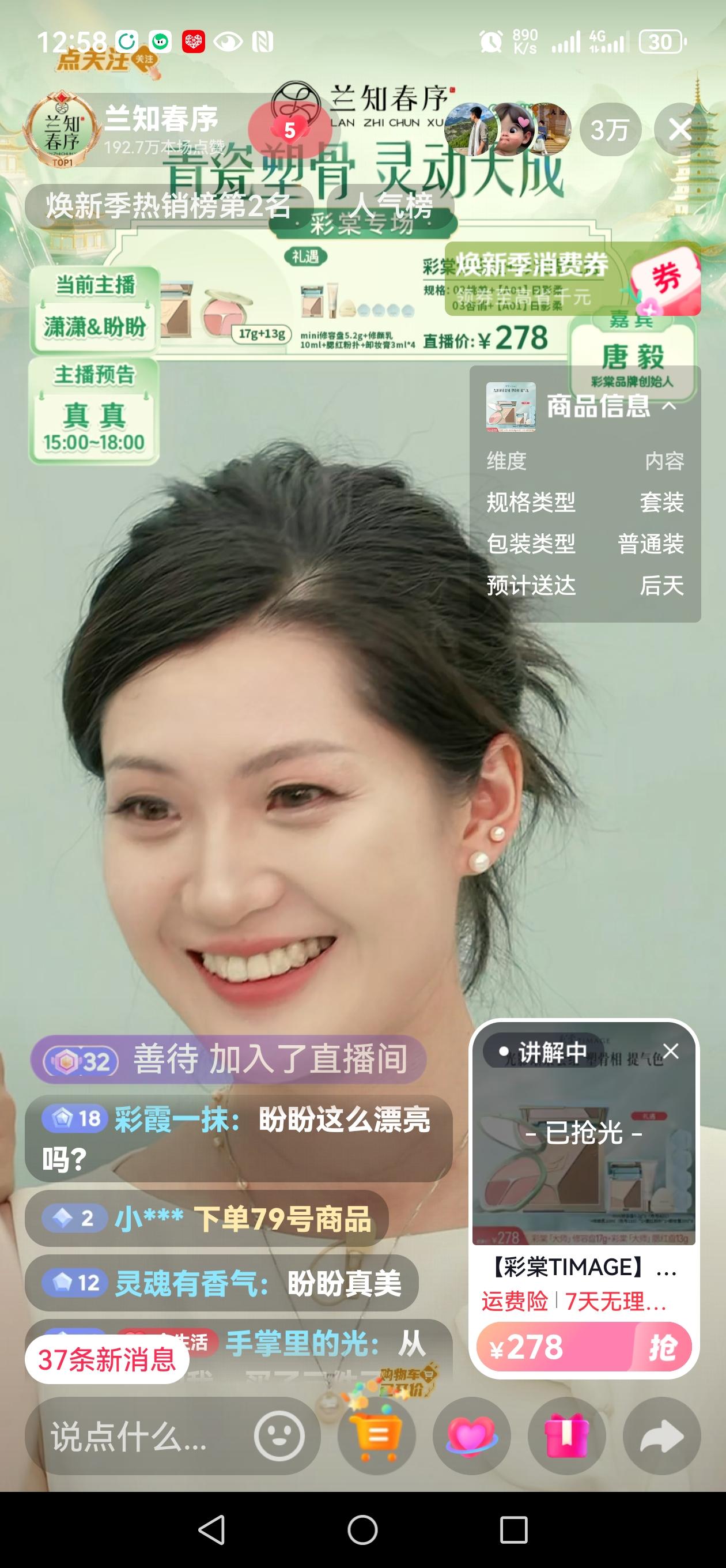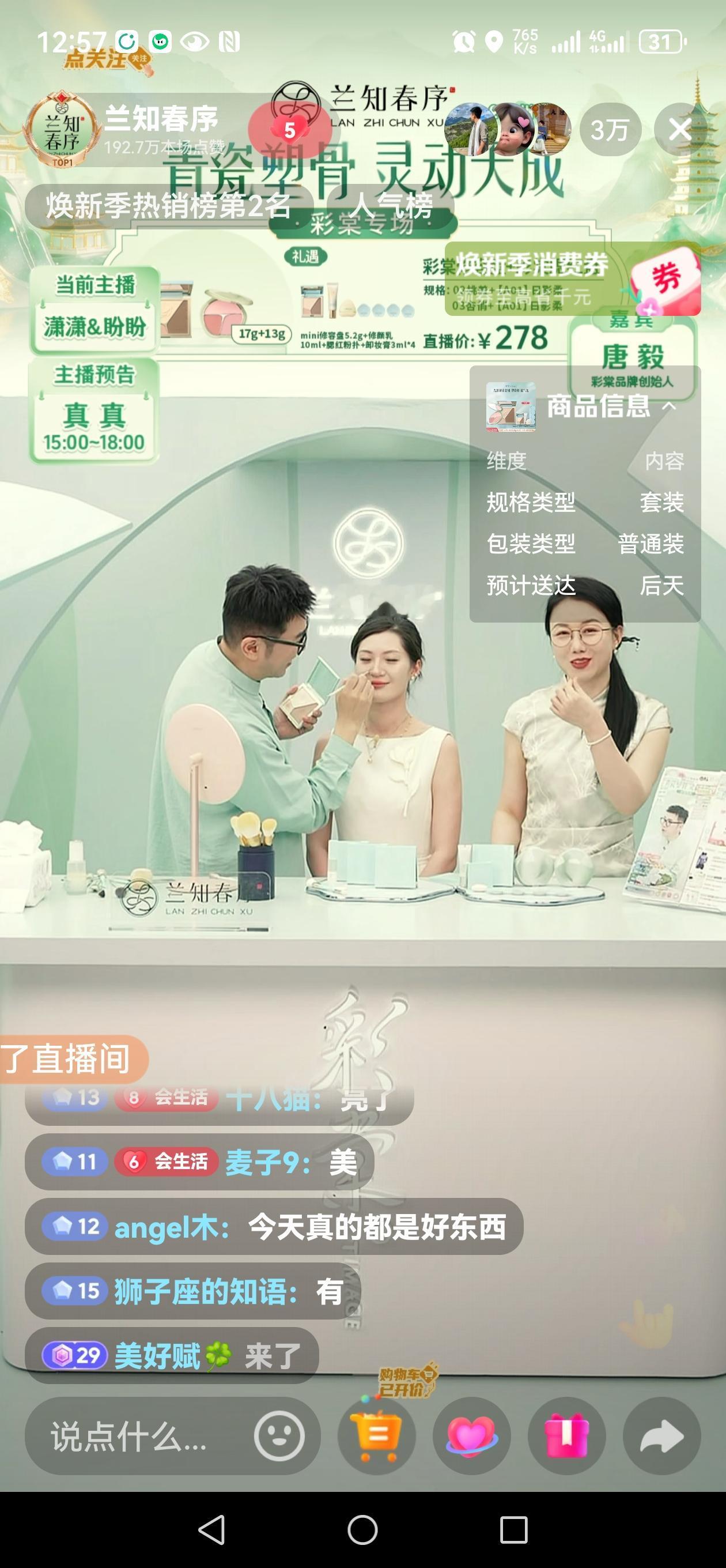 盼盼的盛世美颜,赛过了影视明星陈都灵。今天兰知春序直播间的美妆海棠专辑,明星陈都灵作为代言人来到直播间,一起宣传产品,和明星同框,没有磨皮,没有后期,谁是西施,谁是貂蝉,一目了然。