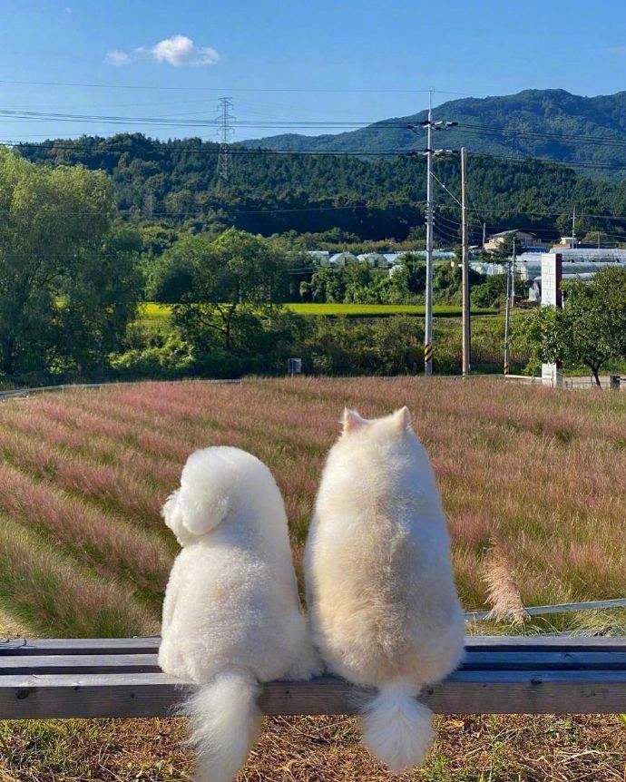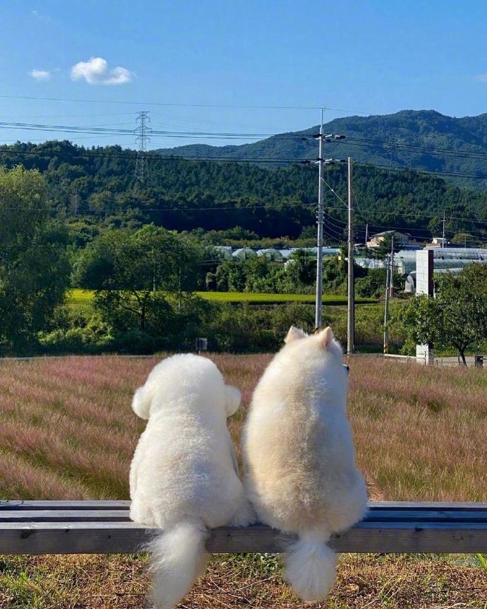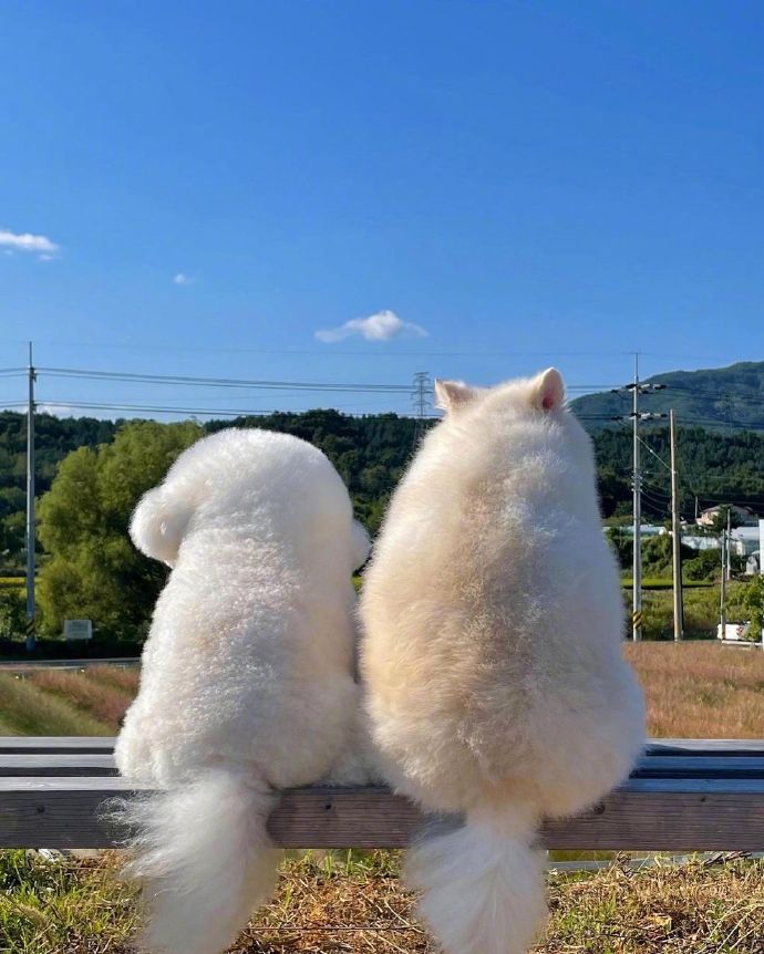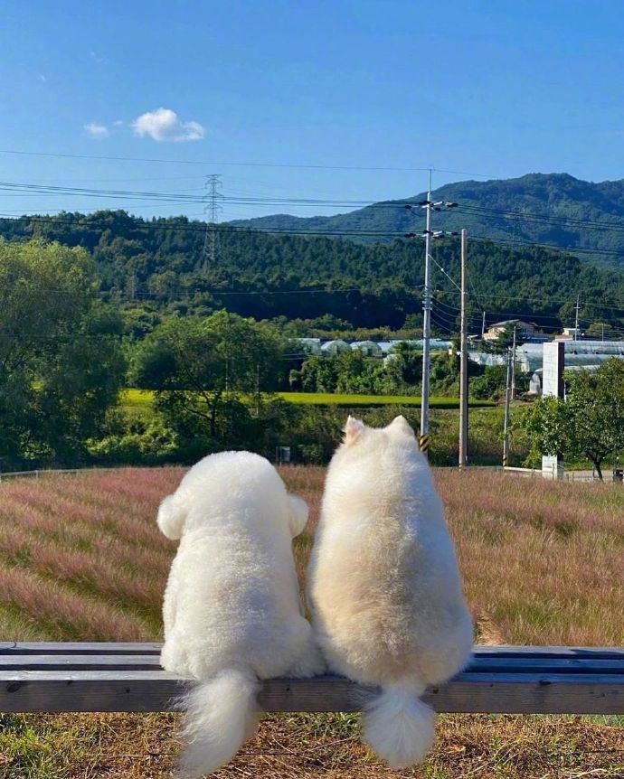 两只软白团子坐在一起看风景,这画面过于可爱了!