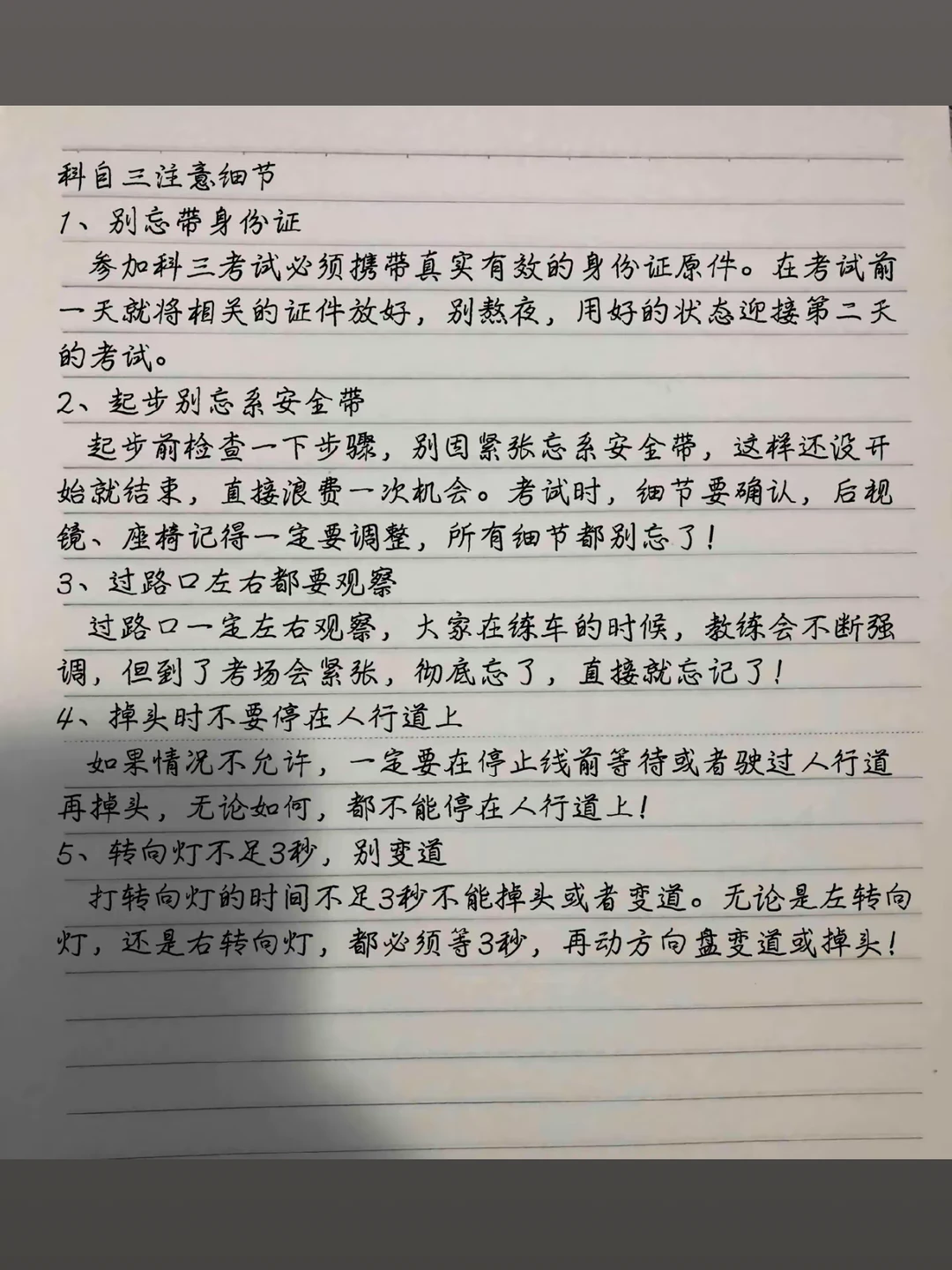 1.上车准备:调座椅后视镜+复位灯先+饶车一周;