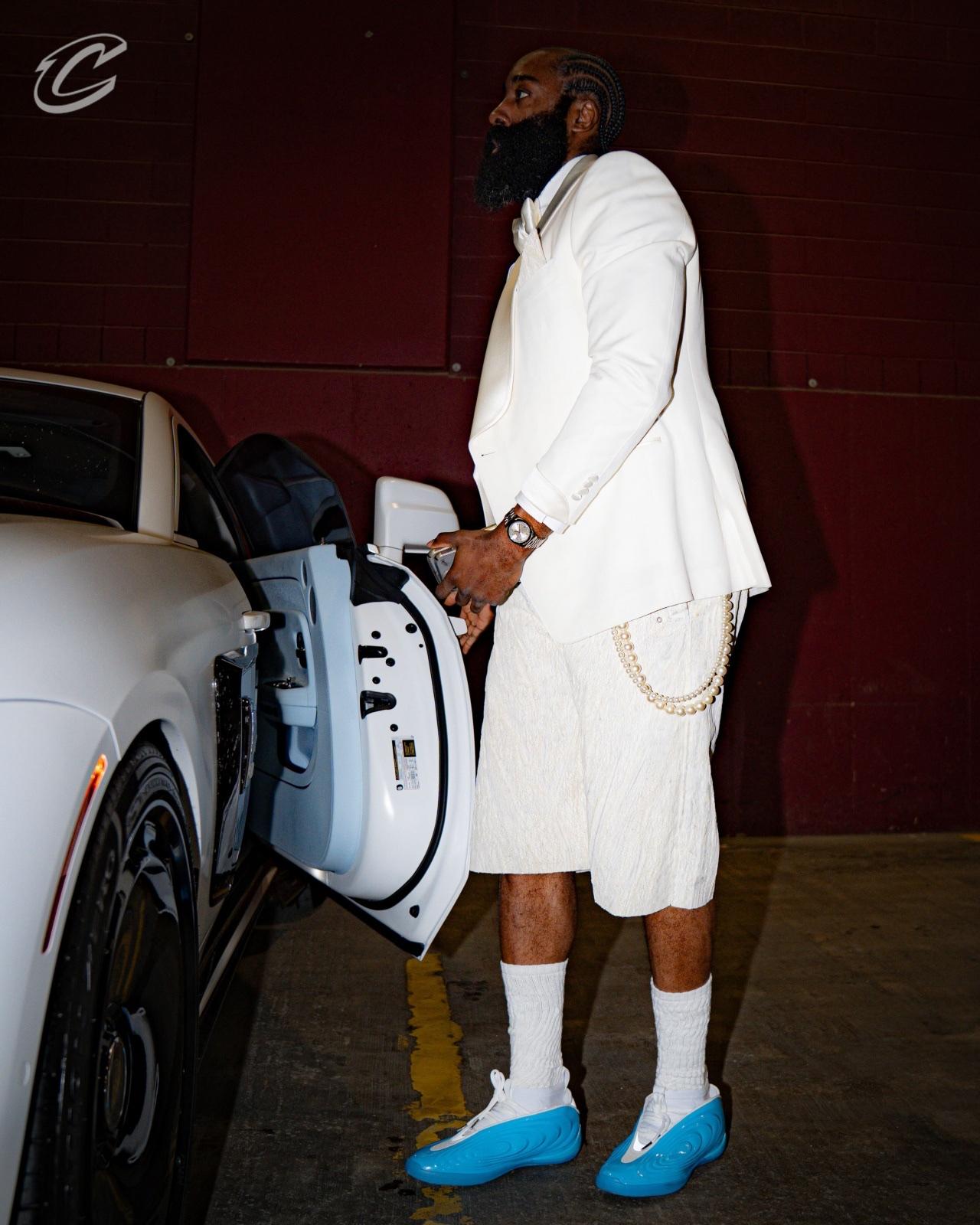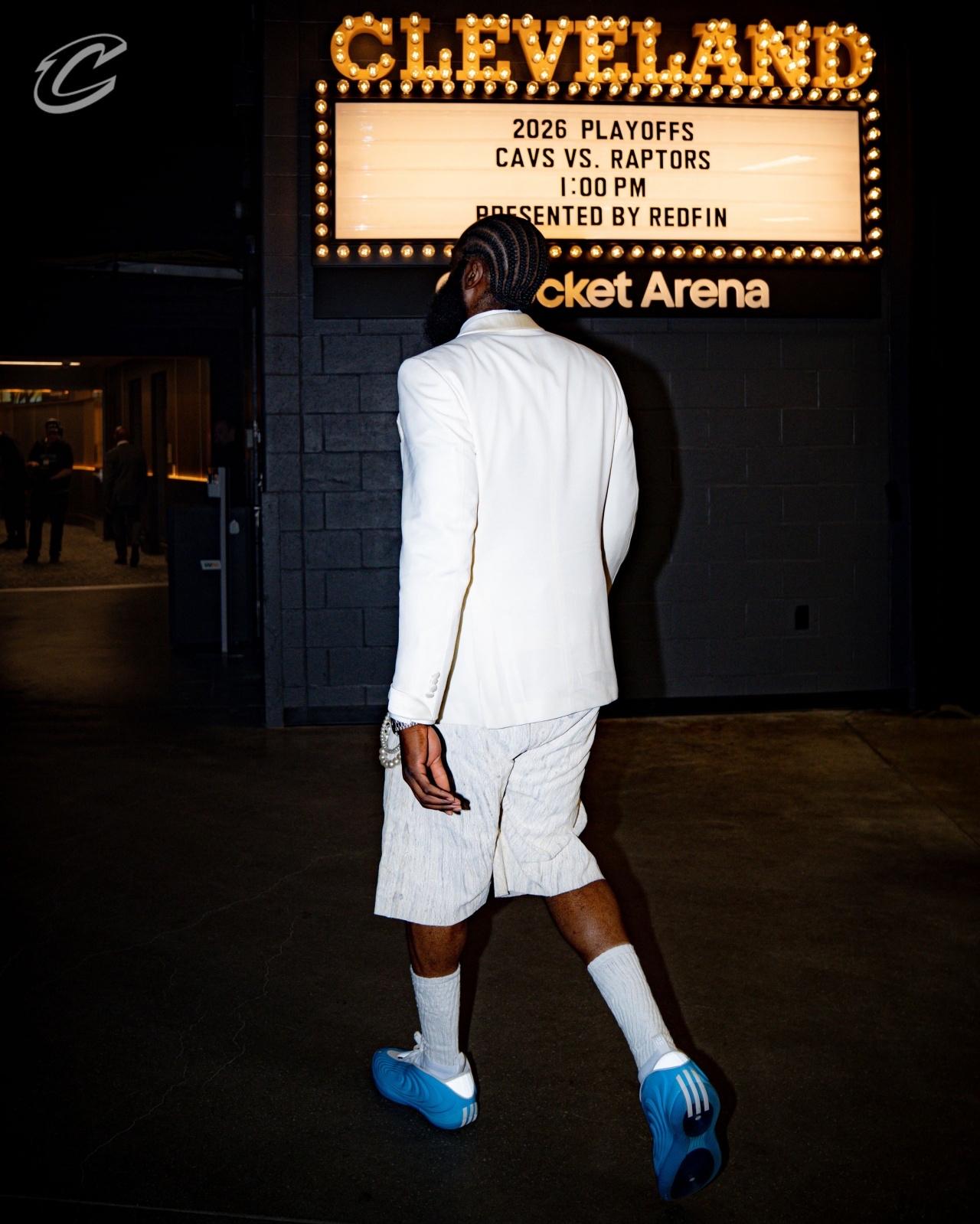 季后赛首战,哈登能不能像他入场的穿着一样,化身白龙马,驮着骑士将猛龙斩于马下?