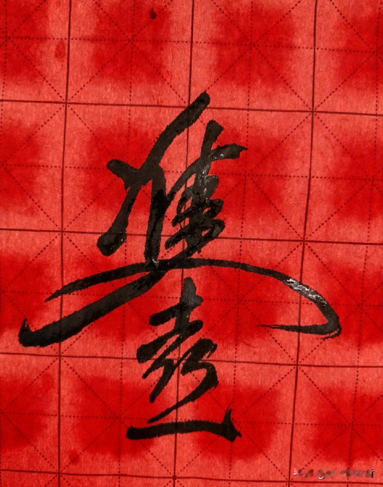 为什么要带上这一点呢?我询问了许多管事的老支,他们都说不清楚。因为这个就“喜”字下面的点,我们这里还闹过一个笑话:村里有位60多岁的退休干部,刚回到农村不久就被人赶着鸭子上架写这种“喜”,结果他写出来的“喜”字下面没有这一点。