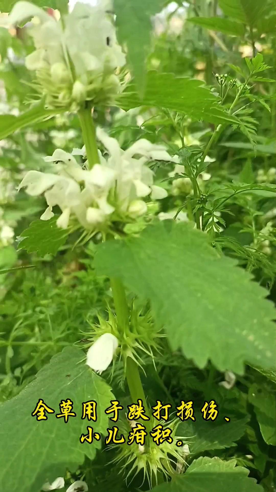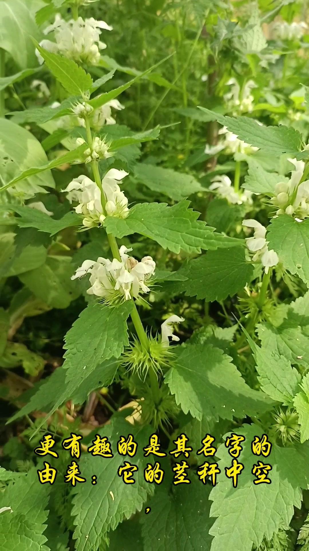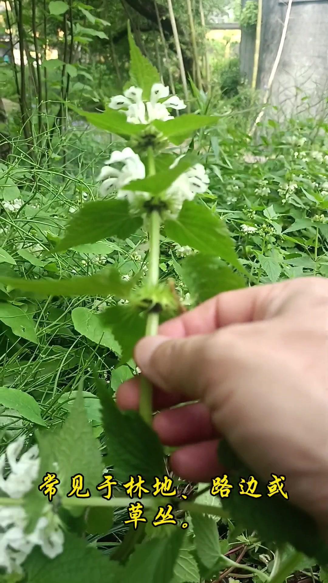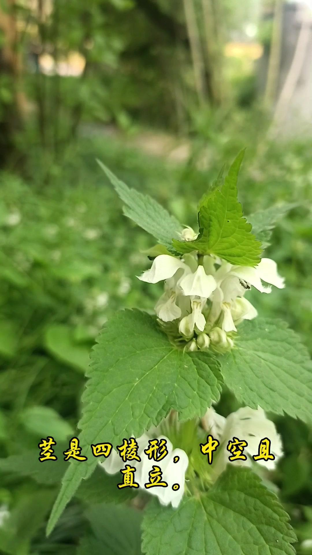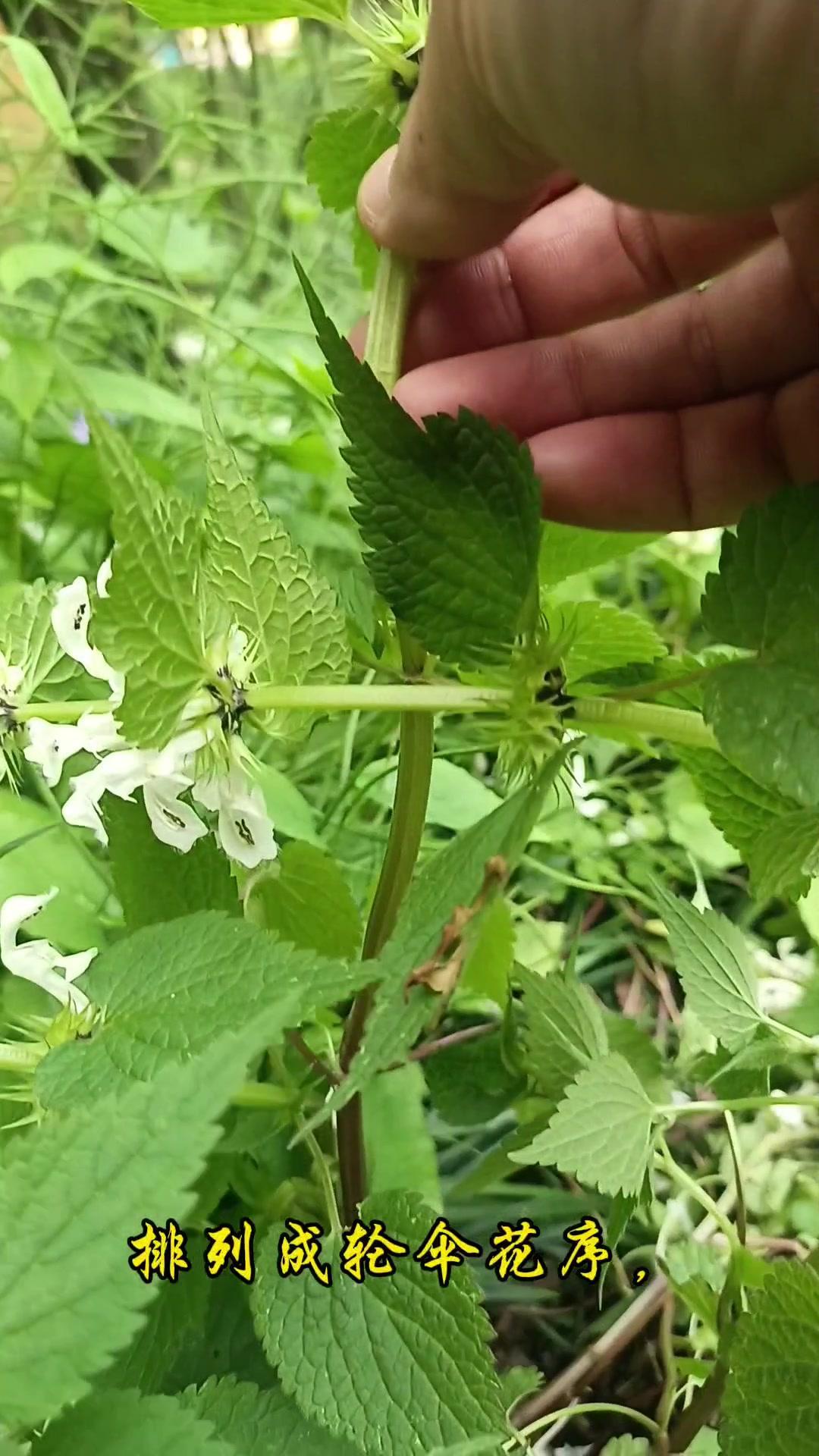 2️⃣形态特征:属于唇形科多年生草本,常见在林地路边或草丛。花是白色,轮伞花序排列,上唇像小帽子或头盔,边缘有细密绒毛,下唇分三瓣。叶片边缘粗锯齿,对生在四棱形茎上,茎中空且直立,摸起来可能有轻微绒毛感。