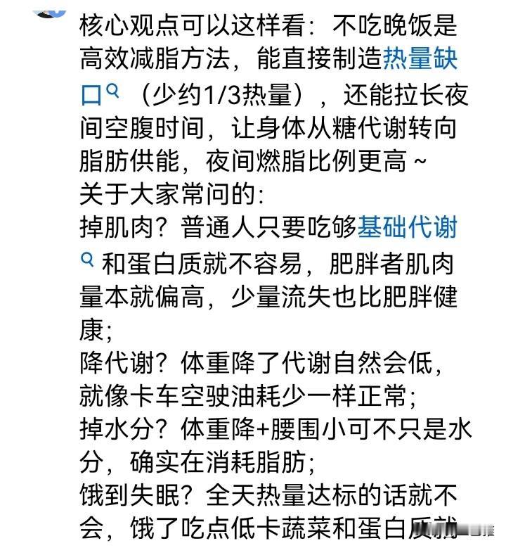 我因为胖,常年不吃晚饭。 看了一个健身教练的小作文,豆包给归纳的,好像还真的可