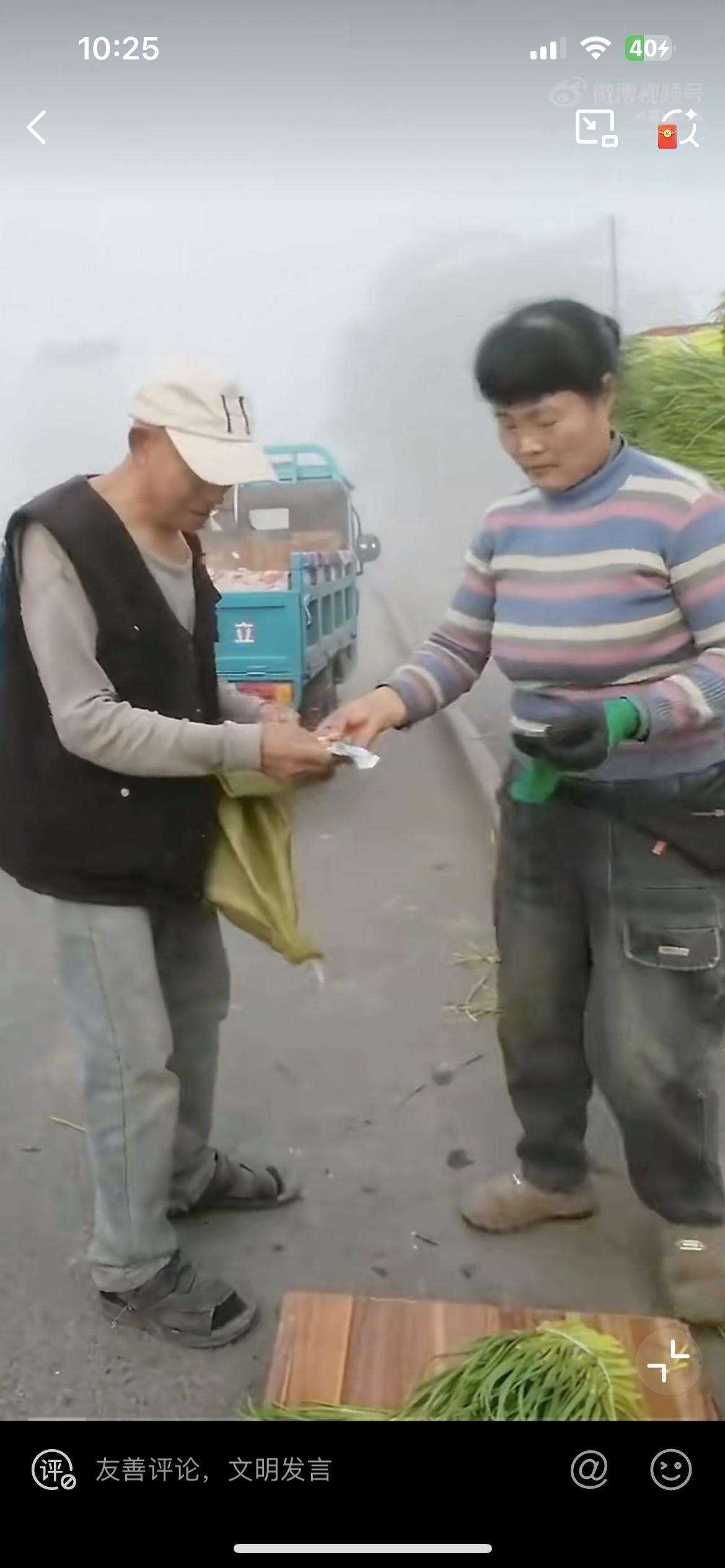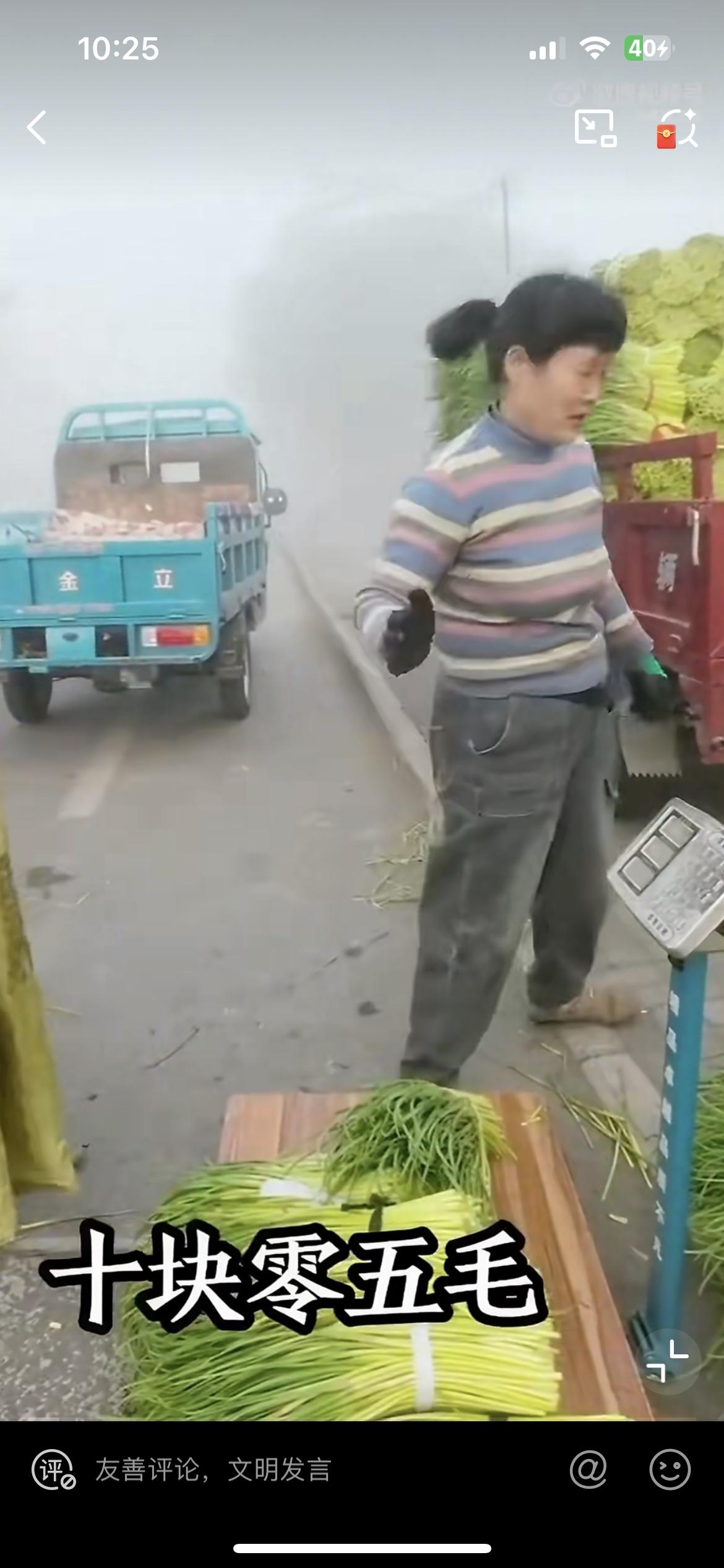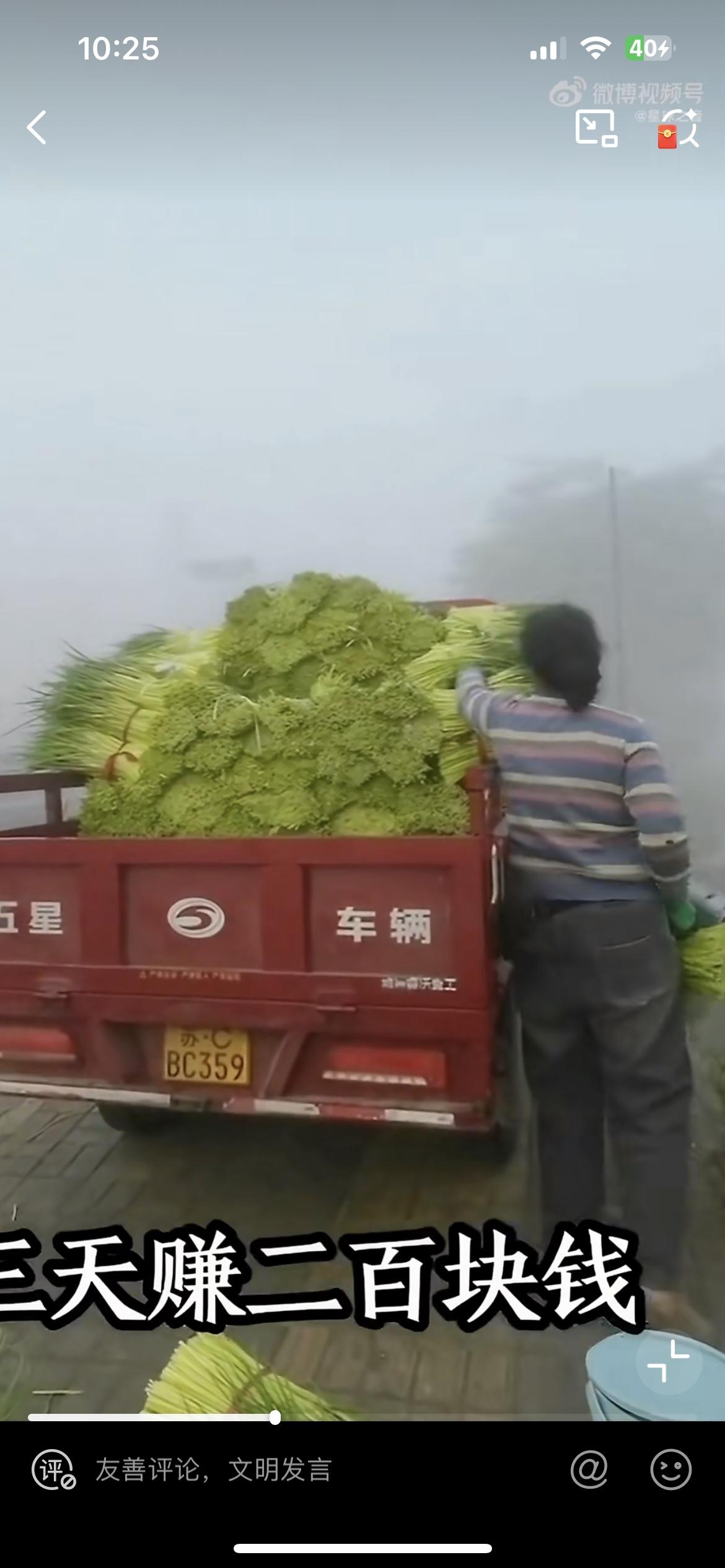 大爷一大捆自家种的蒜苔卖给菜贩才 10 块 5 毛钱,他说这是一下午的功夫,从菜地里收上来,捆扎好,再运到菜贩这里,就半天的时间挣了 10 块钱,感慨劳动力不值钱,辛辛苦苦种的蔬菜更是价贱,问题到底出在哪里?可明明菜市场这种新鲜的蒜苔4~6 块钱一斤,田间地头收购价不到一块钱。中间的环节钱到底被谁挣了?菜贩大姐却说她一天只挣六七十块钱,因为她上面还有更大的菜贩子。