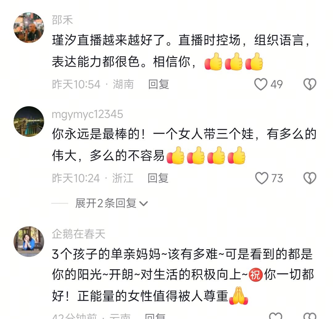 嗯,那个米总我之前刷到过,简介说自己是做大牌的小人物,有十万平的线下云仓。说真的,他控场能力是真给力,瑾汐有时候话少,他总能麻溜的接上话,不会冷场。昨天瑾汐直播我也蹲了会儿,在线一千多人,虽然不多,但弹幕全是支持的,没有乱七八糟的节奏,看着就巴适。