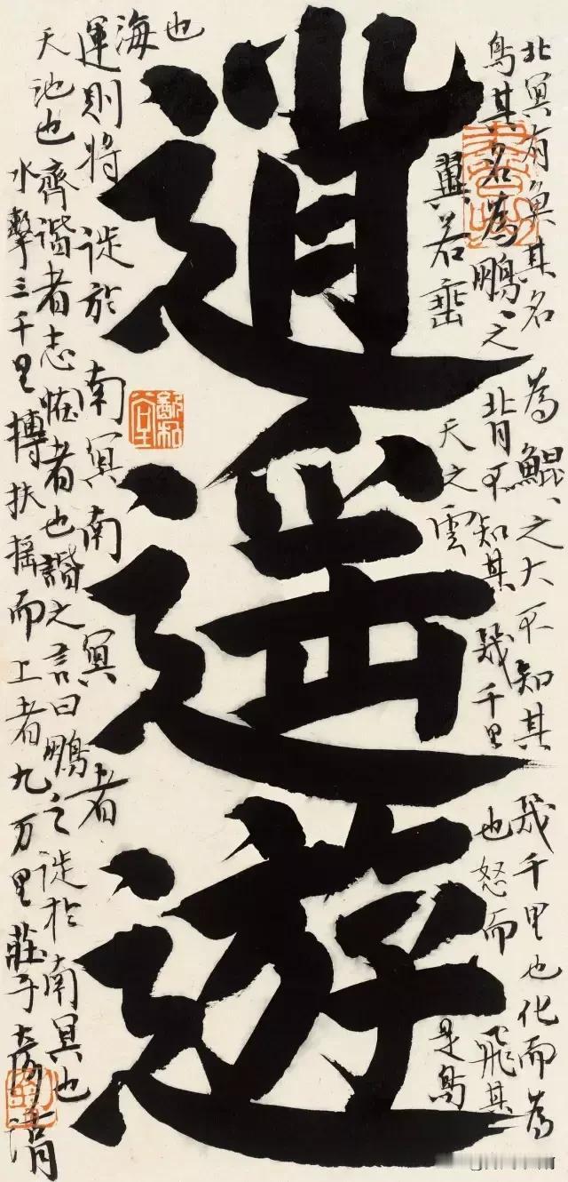 他也是小笔写大字,这点学习他老师了,缺点很明显。