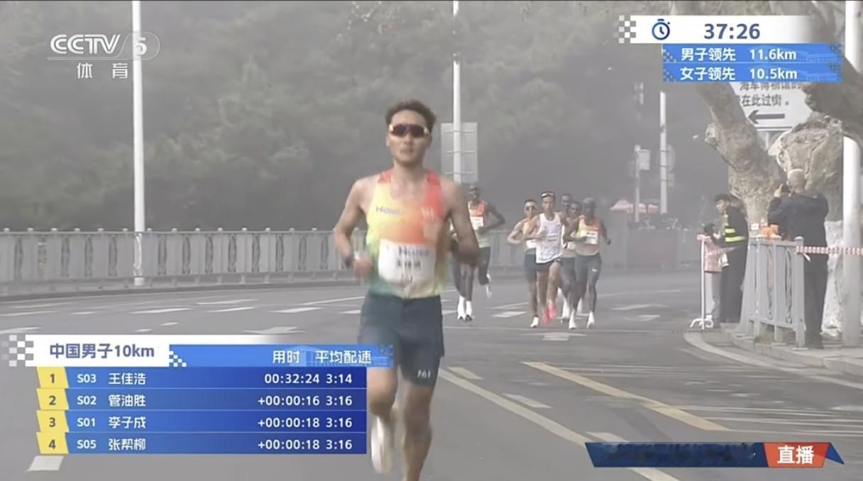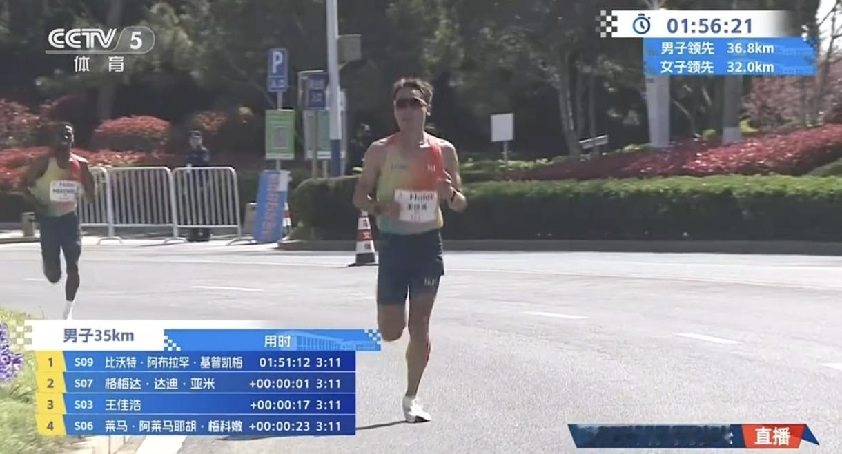 30公里前,王佳浩与管油胜、李子成第一梯队领跑,并在9公里后独自突围。即便一路单骑、配速飙升至3分10秒,42秒的领先优势仍在33公里遭遇极限反扑。面对外籍选手的疯狂追击,他顶住体能崩盘压力,最终以2小时15分33秒守住国内冠军!
