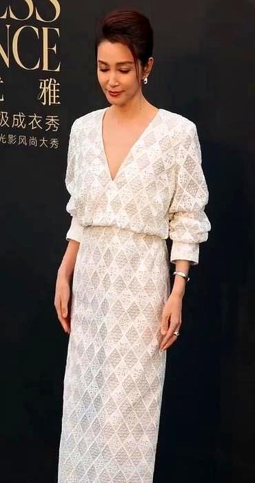看她近期的状态很真实。之前穿金色亮片细肩带长礼服,镜头里下颌线清晰得很。眼角带点自然的鱼尾纹,看着特别从容。
