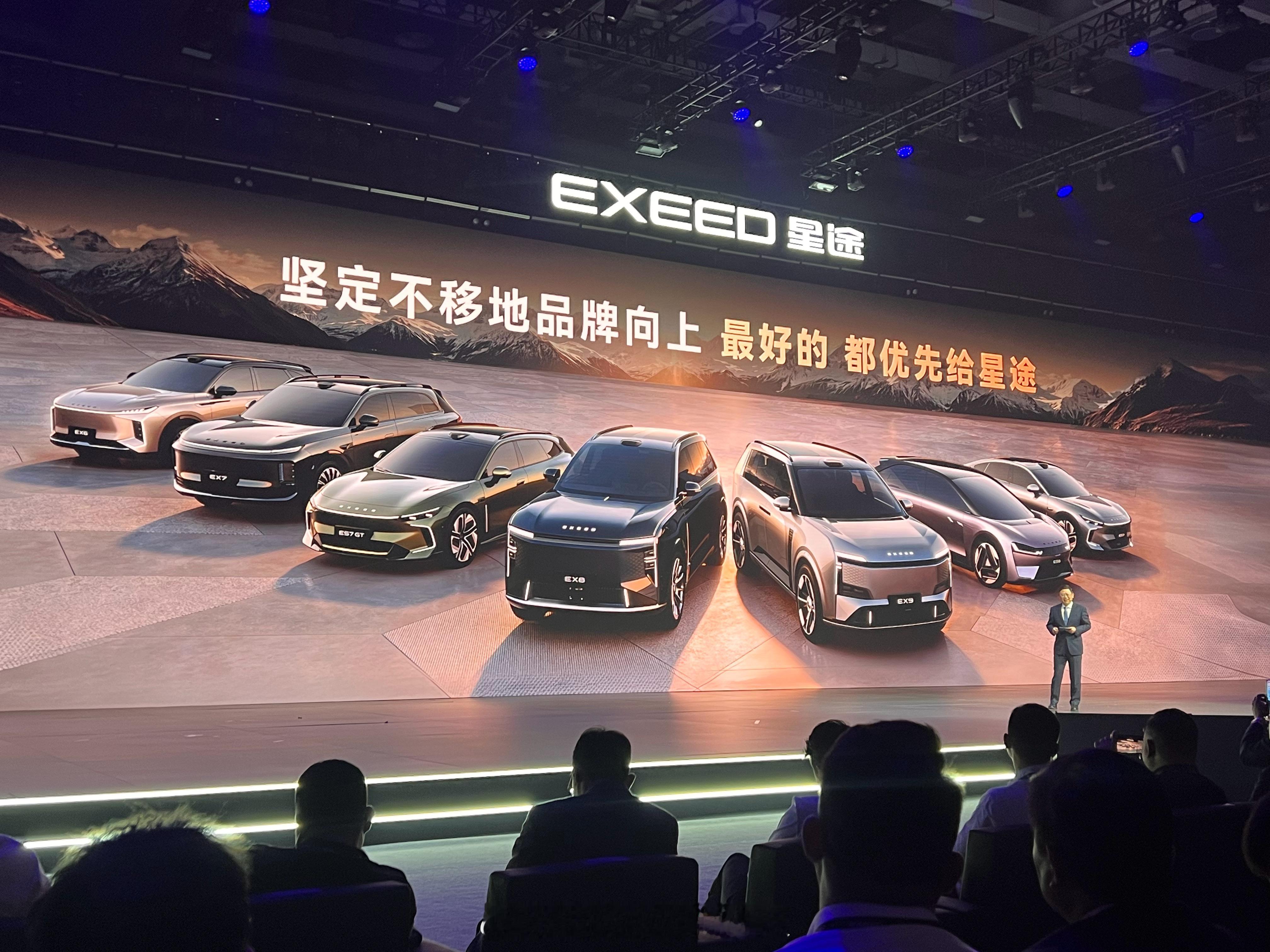 星途EX7的各个颜色都来了兄弟们你们觉得哪个颜色最好看发布会现场还把车拆了看来对