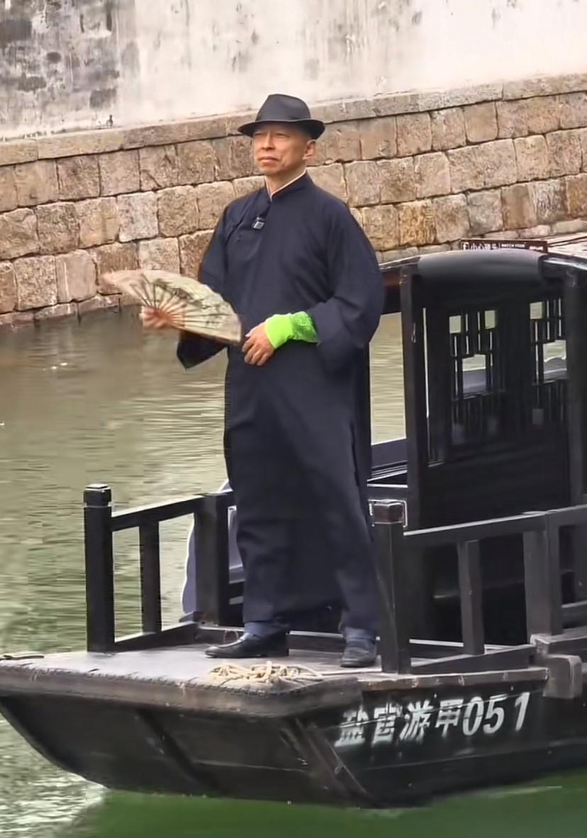 你还别说,张朝阳往船头一站,江湖味儿就出来了。一身长袍,一顶礼帽,一把折扇,那股江湖味儿一下就出来了。