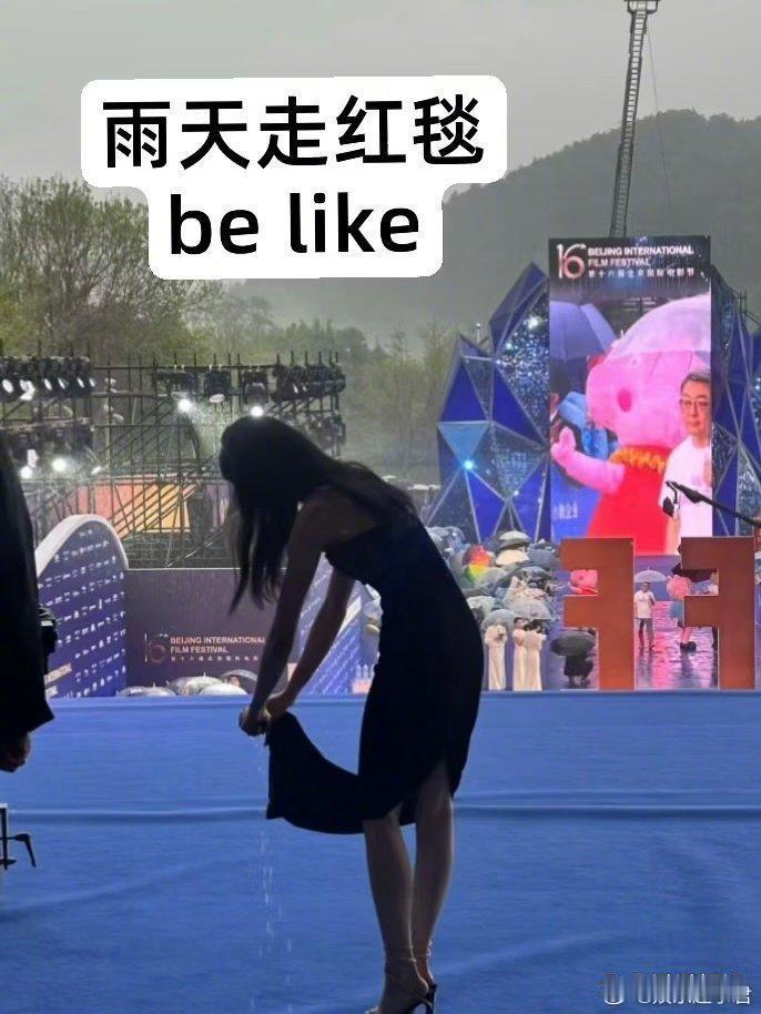 雨天走红毯belike就像刘浩存这样 !这个存儿真的好接地气吧!北京电影节美美地