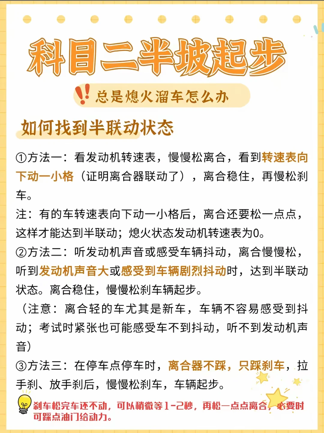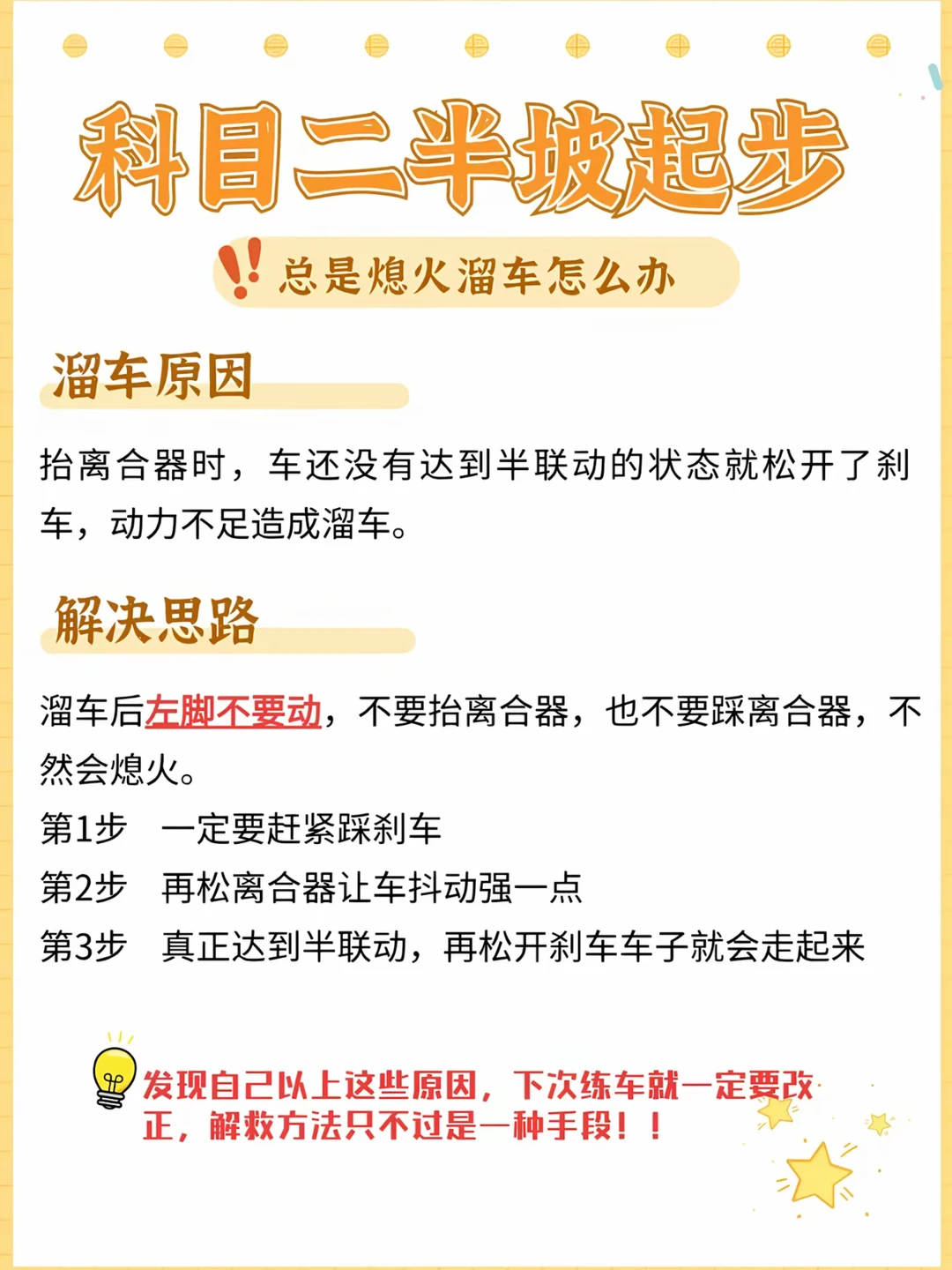 1.达到半联动状态还迟迟不松刹车,把车憋灭了