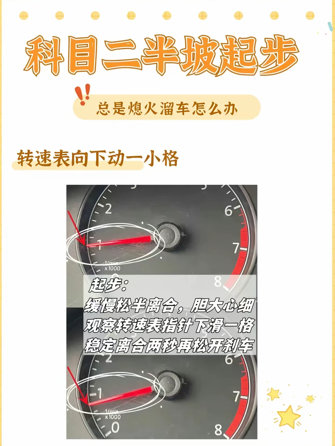 2. 达到半联动后,松开刹车时,左脚离合器没有稳定,动了一点,导致熄火