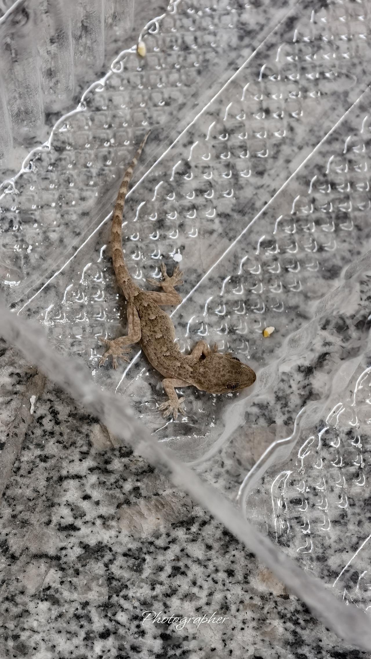 鹰哥营救小壁虎!赶巧,楼道里小壁虎爬墙掉进小孩吃的饼干塑料透明盒里,怎么也爬不出