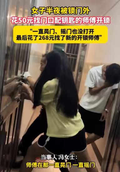 “笑不活了!”广东惠州,女子半夜被锁门外,她花50元找开锁师傅。万万没想到,开锁师傅开不开,他又叫了一个人来开,让女子加30元,但小伙看着专业,可还是没打开。最后,女子花268元,重新叫了开锁师傅,才完成开锁和换锁。