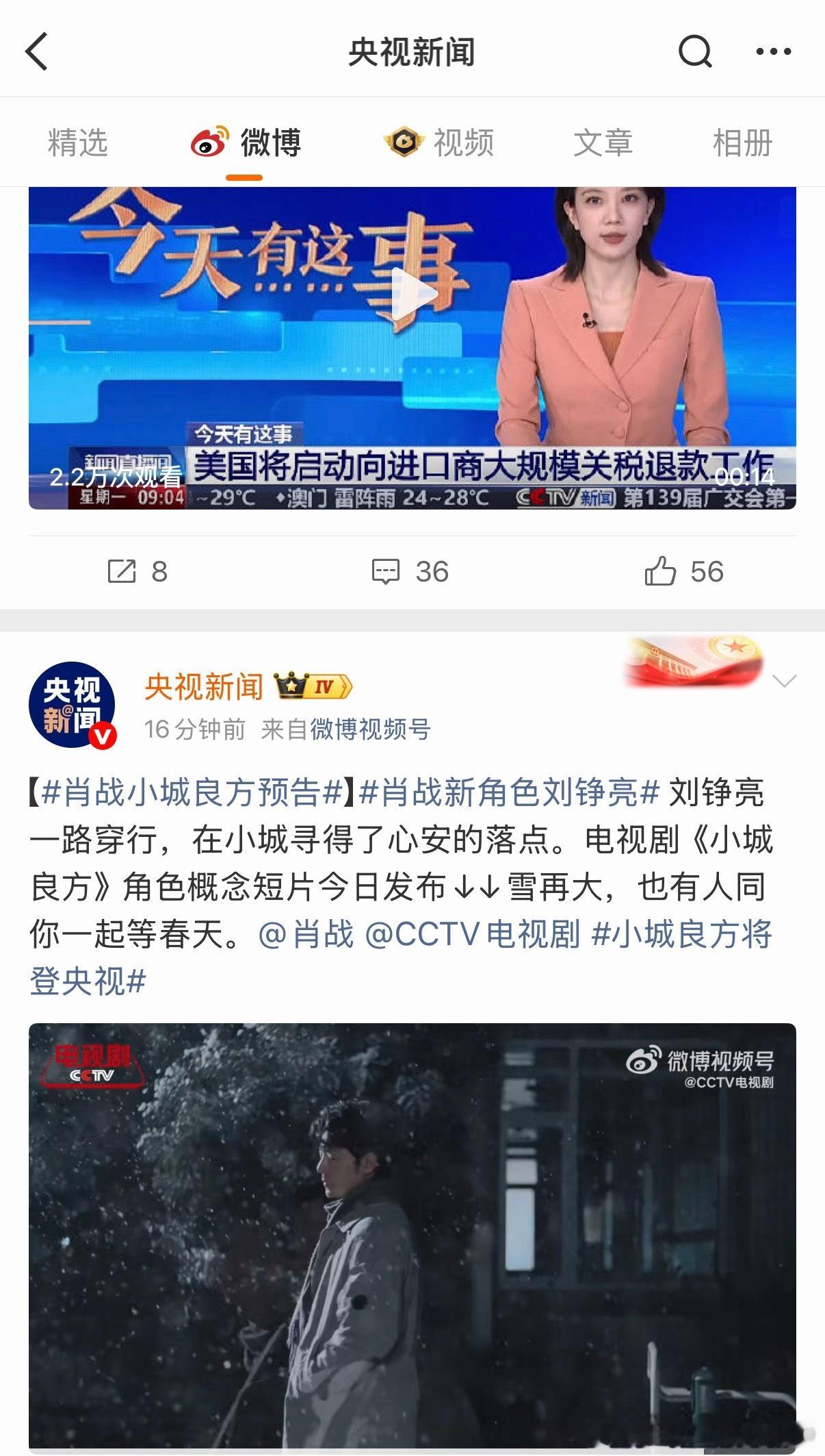 央视新闻也就发了小城良方,还有央8卡点肖战生日而已肖战新角色刘铮亮