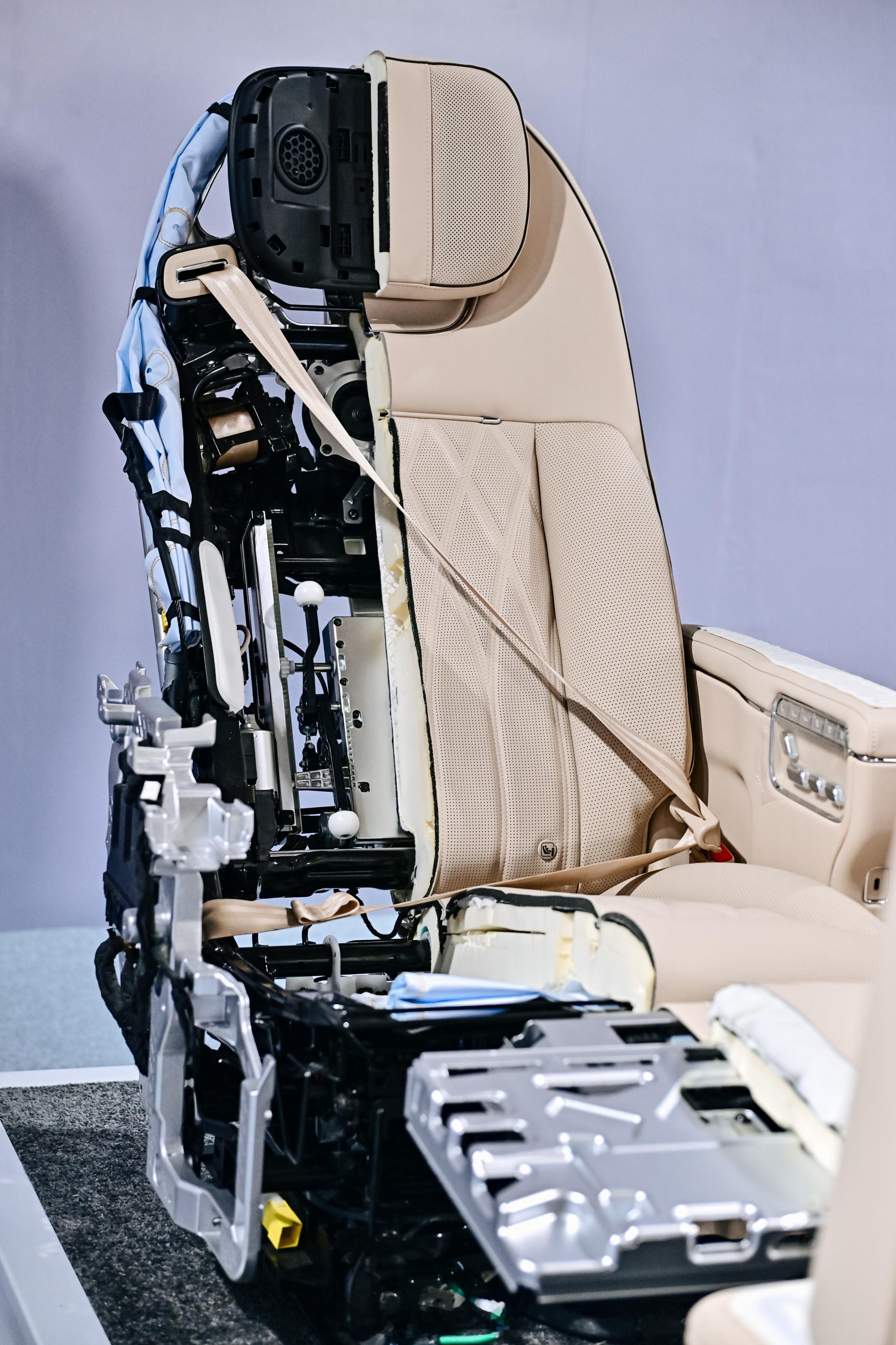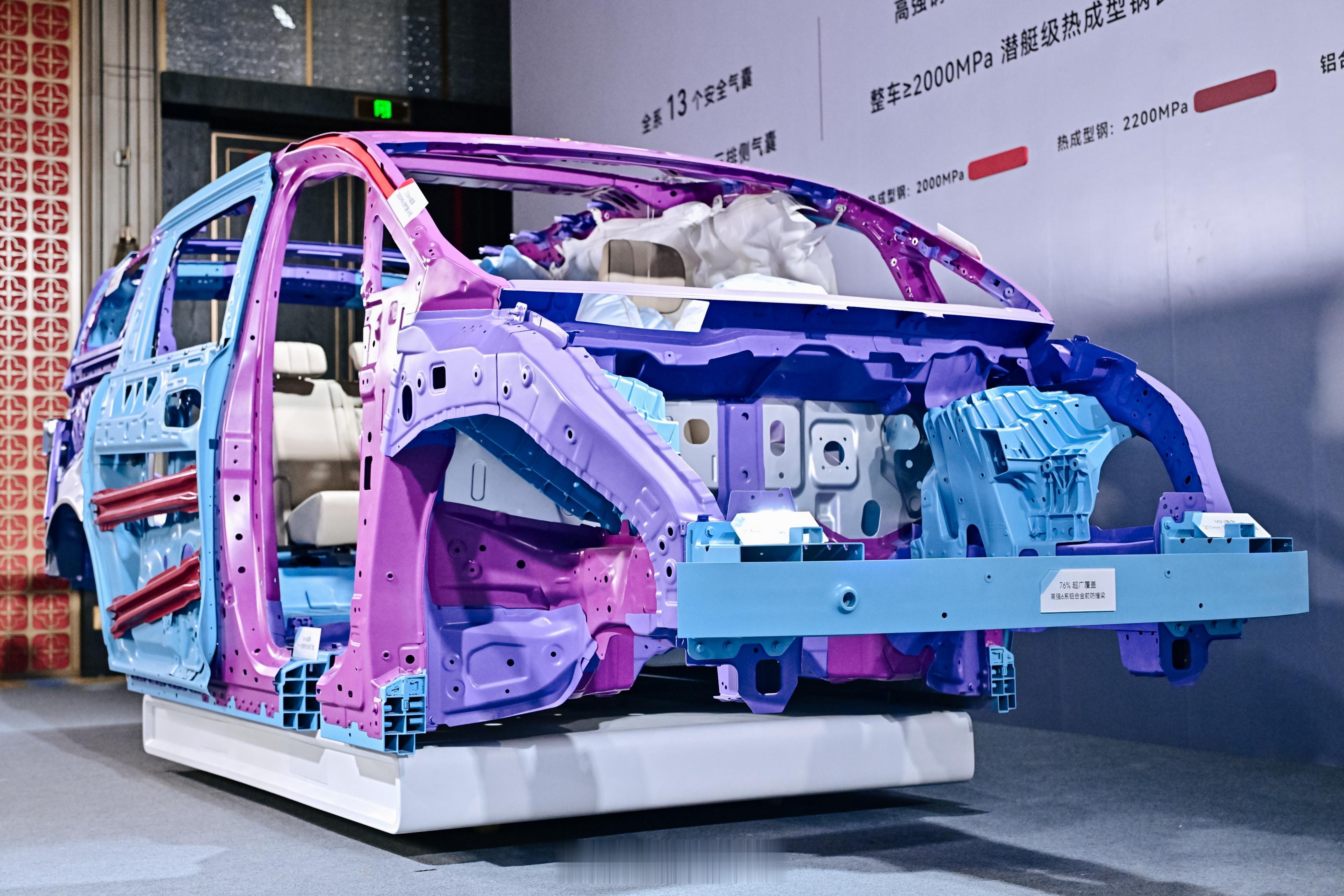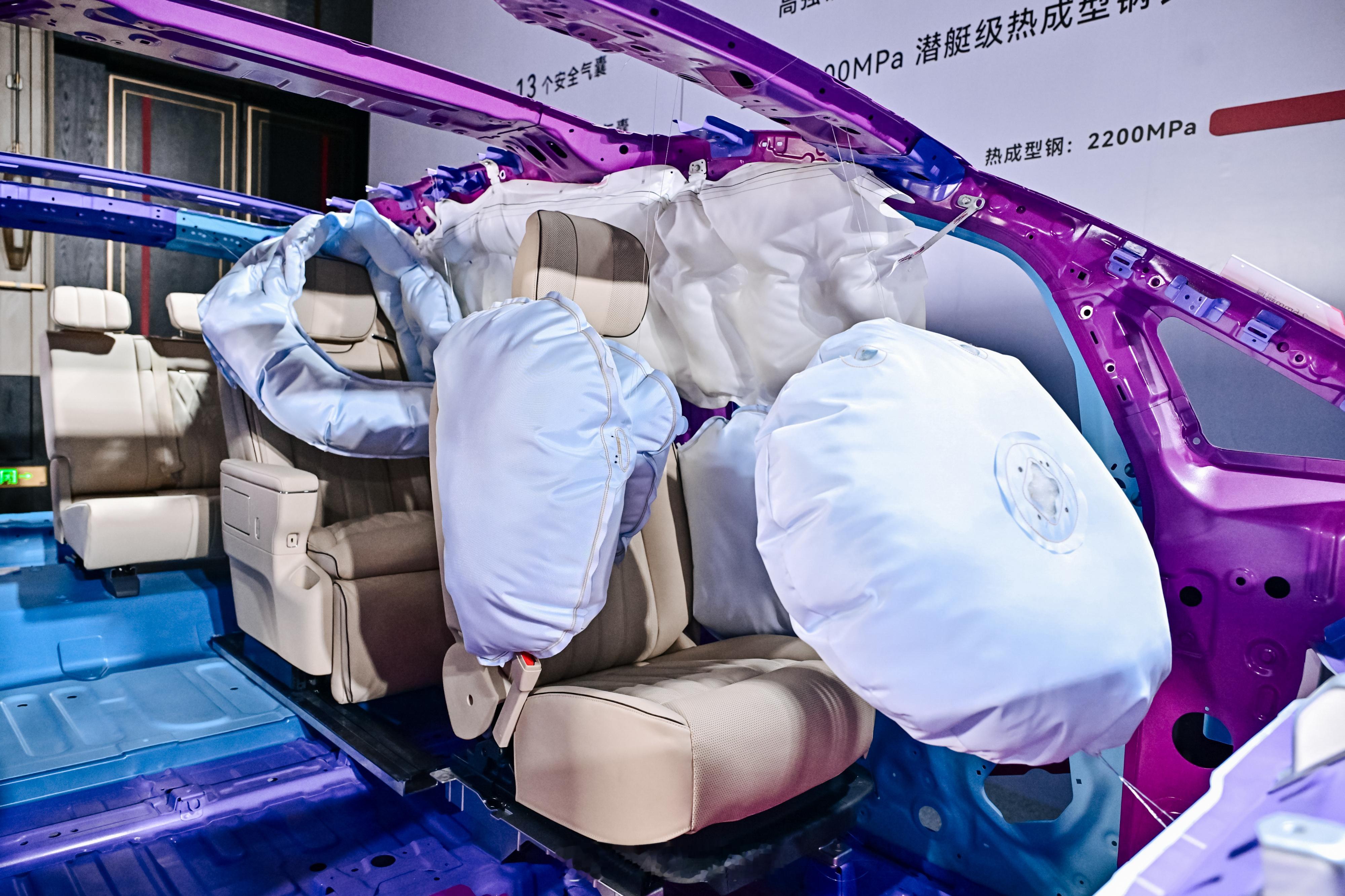 安全展具专区基本上就是对车身 + 全域防护的拆解,众所周知,以前 MPV 的安全性一直是弱项。