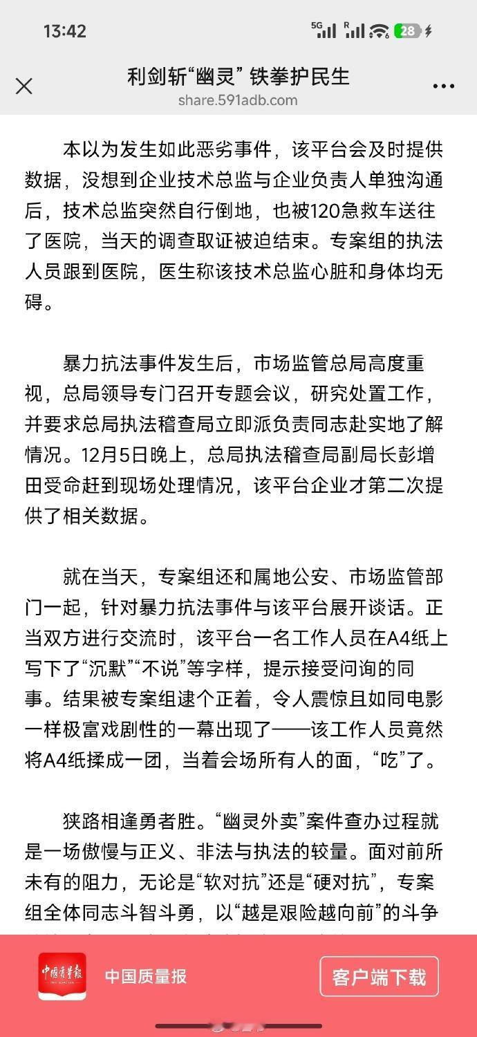 《中国质量报》是国家市场监管总局下属的媒体,它在今天的头版头条详细记录了国家市场监管总局突袭检查拼多多时,发生的暴力抗法事件真实内幕。情节之惊险刺激、曲折离奇,实在是像电影一样。没想到在今天,竟然还有拼多多这样的奇葩企业。
