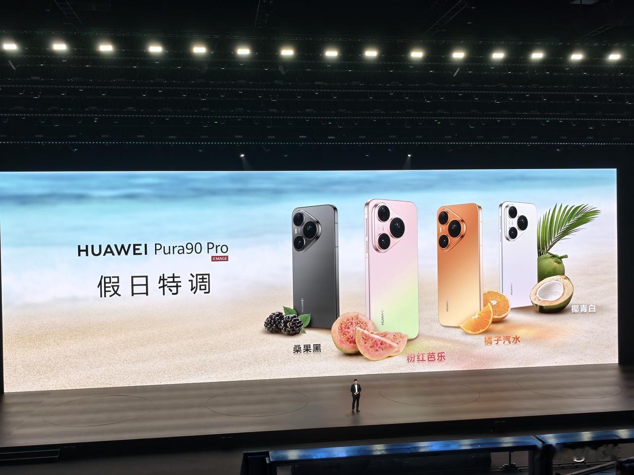 华为Pura 90 Pro Max汲取假日旅行灵感,带来橘子海、翡翠湖、霞光紫、晨曦金、曜石黑五款配色;Pura 90 Pro以假日清甜特调为创意,带来粉红芭乐、橘子汽水、椰青白、桑果黑四款配色。