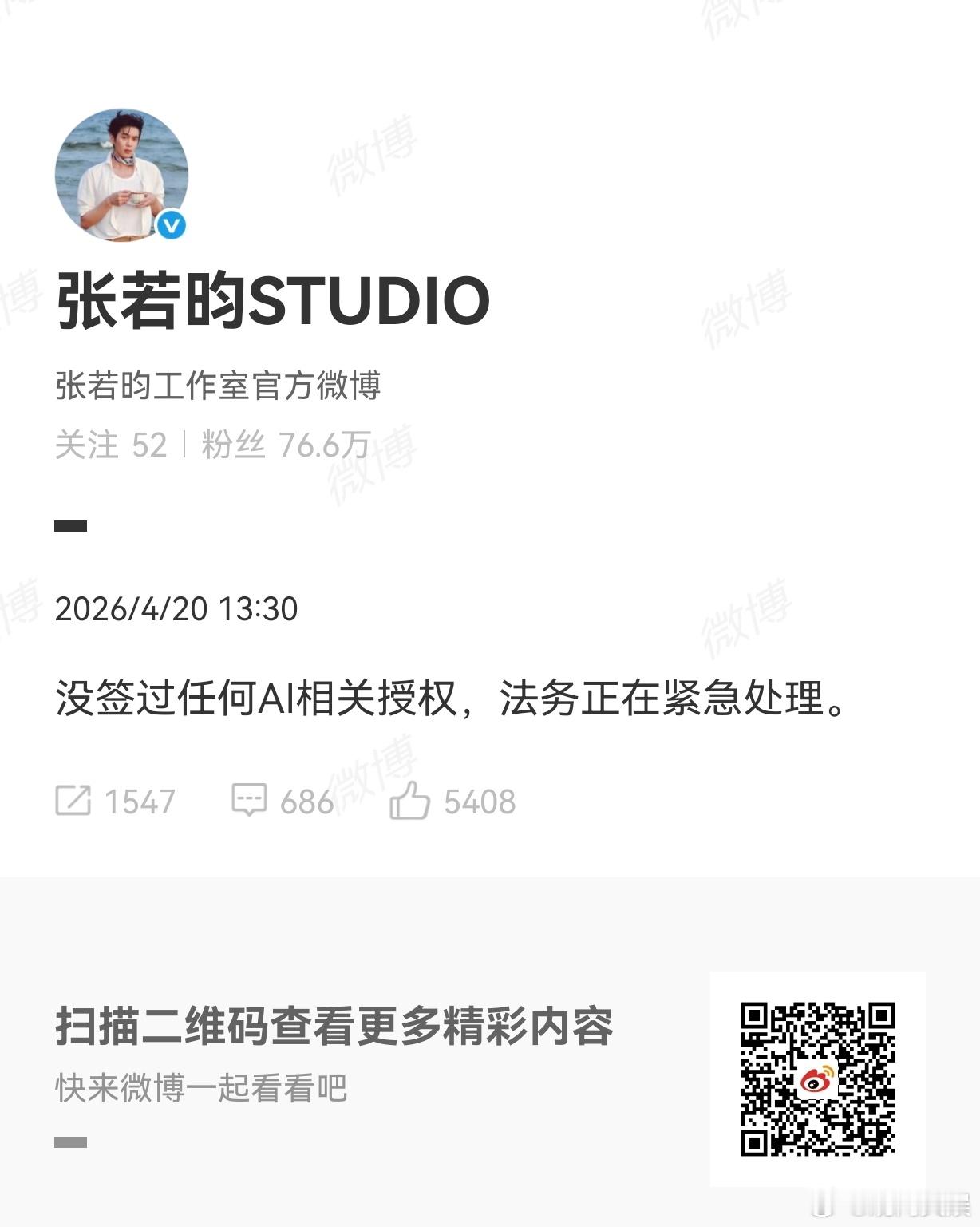多位艺人否认签约AI授权张若昀、李一桐、王楚然、于和伟相继发声,辟谣签约AI授权