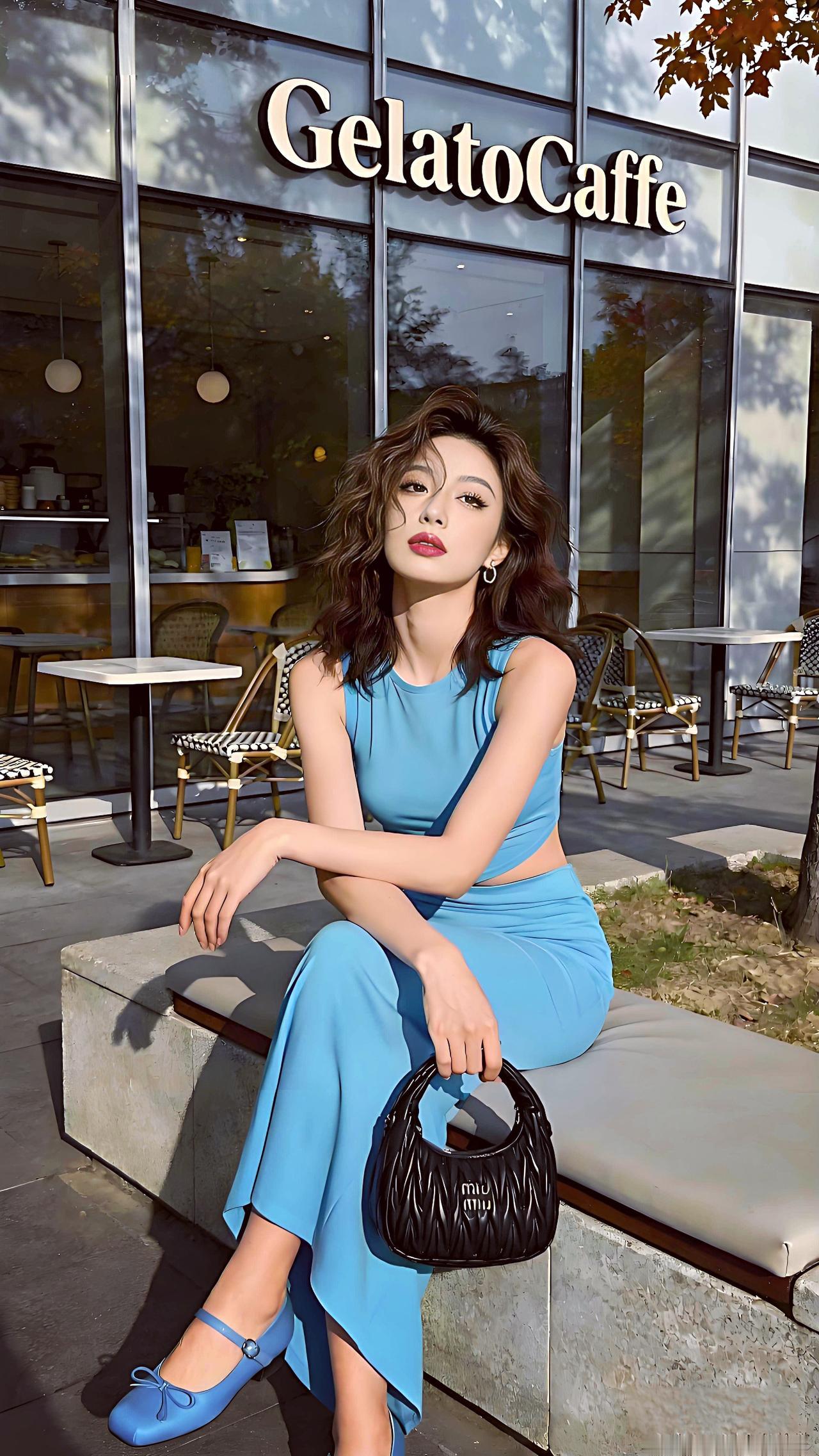 牛油果绿裹着温柔,黑皮裙藏着锋芒。