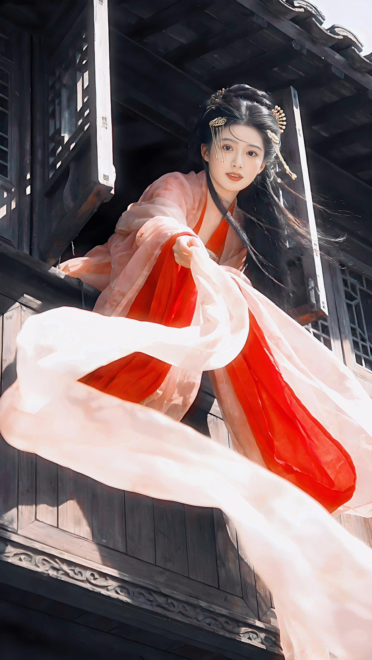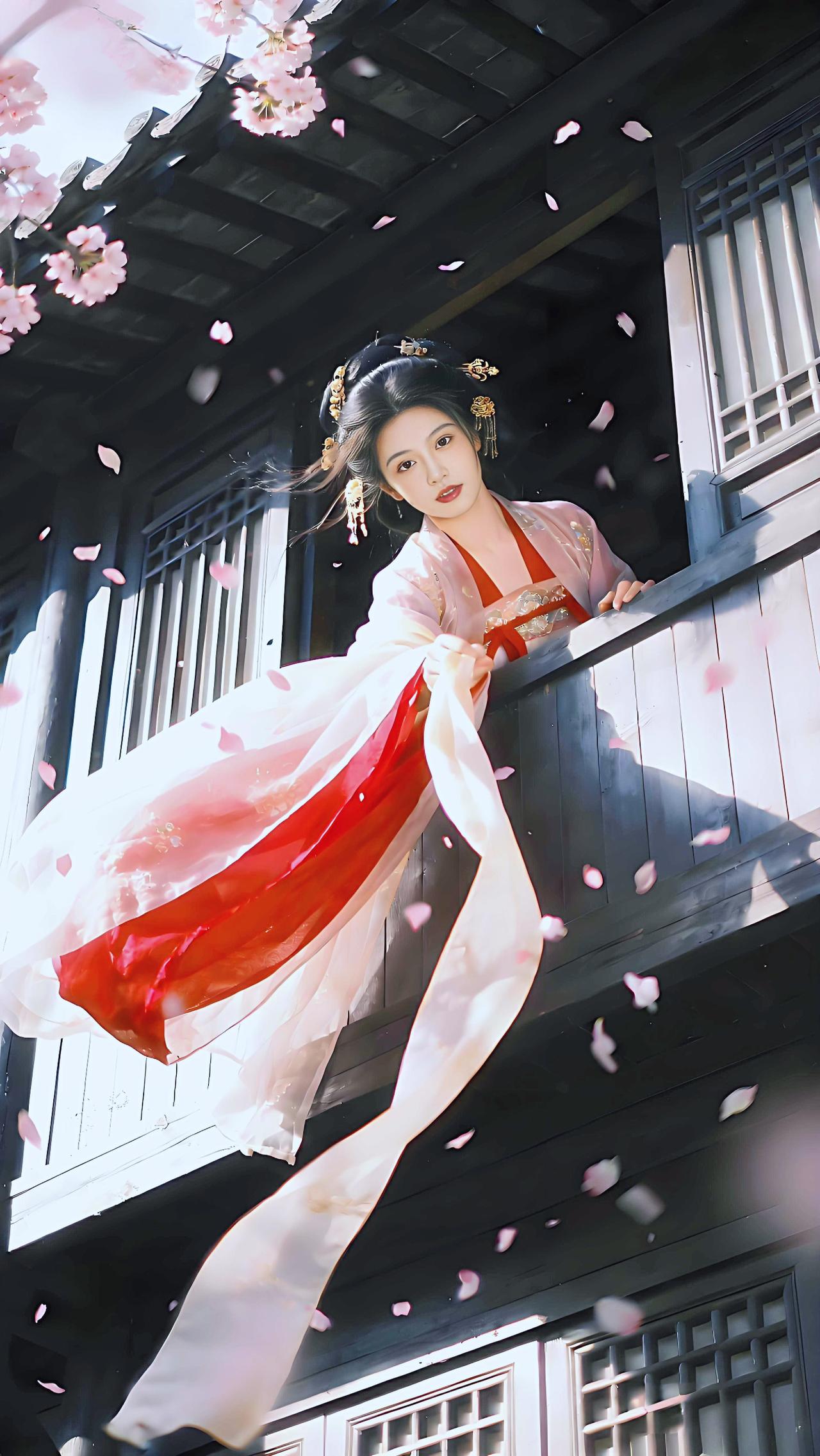 粉衣倚栏,花动惊鸿。