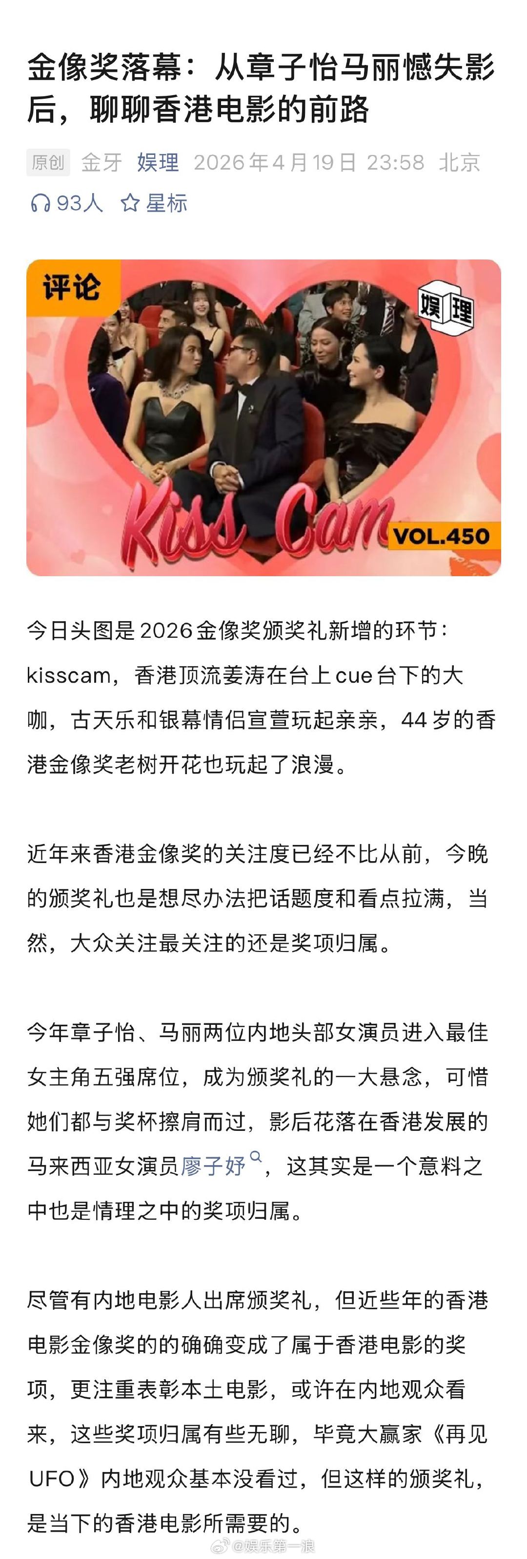 金像奖真的是在爆冷吗 如何看待章子怡马丽没得金像影后 如果把奖项给到《寻秦记》《风林火山》,把演员奖项给章子怡、马丽等人,无疑对金像奖的关注度是一个帮助。对于关注度下降的金像奖而言,如果让内地顶流们入围,当然可以把话题度拉满,但是今年的金像奖显然明显给出了态度,如今的香港电影不需要走这样的路线...娱理独家↓