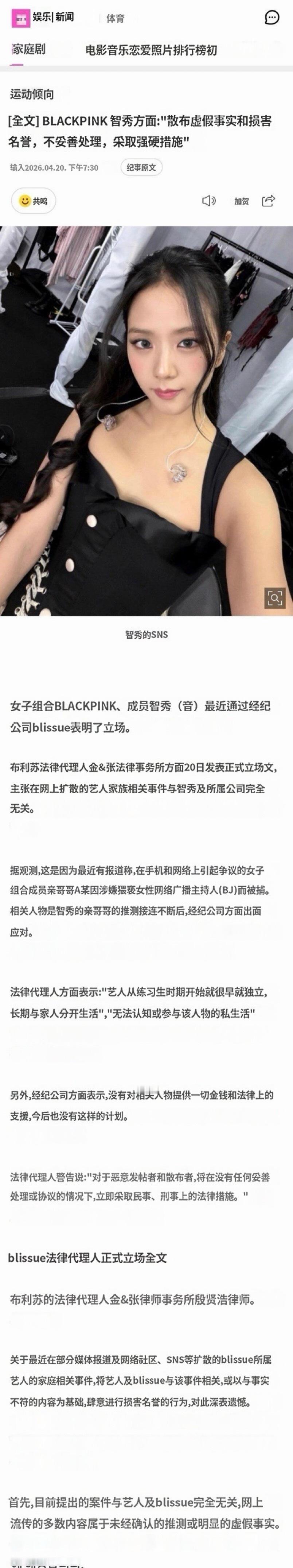 金智秀回应哥哥家暴争议 称不会对其提供金钱和法律上的支援 金智秀方回应哥哥家暴争