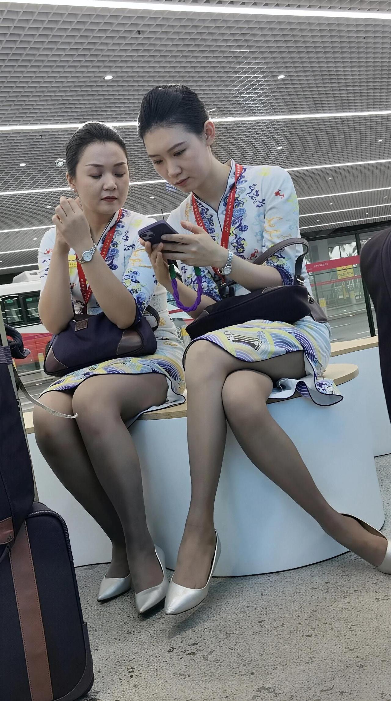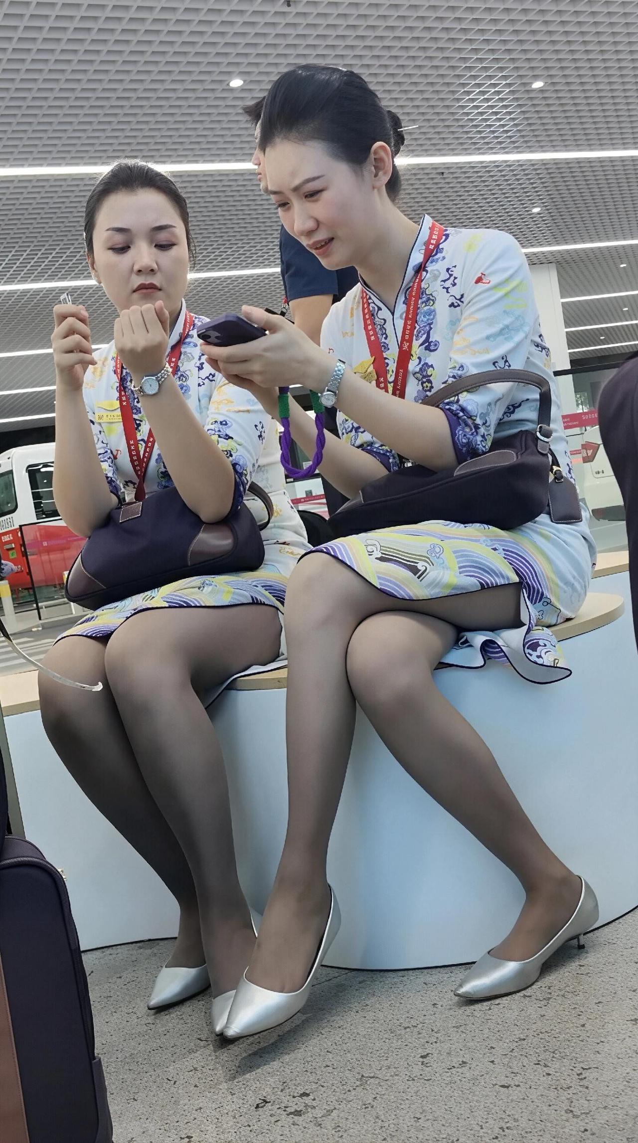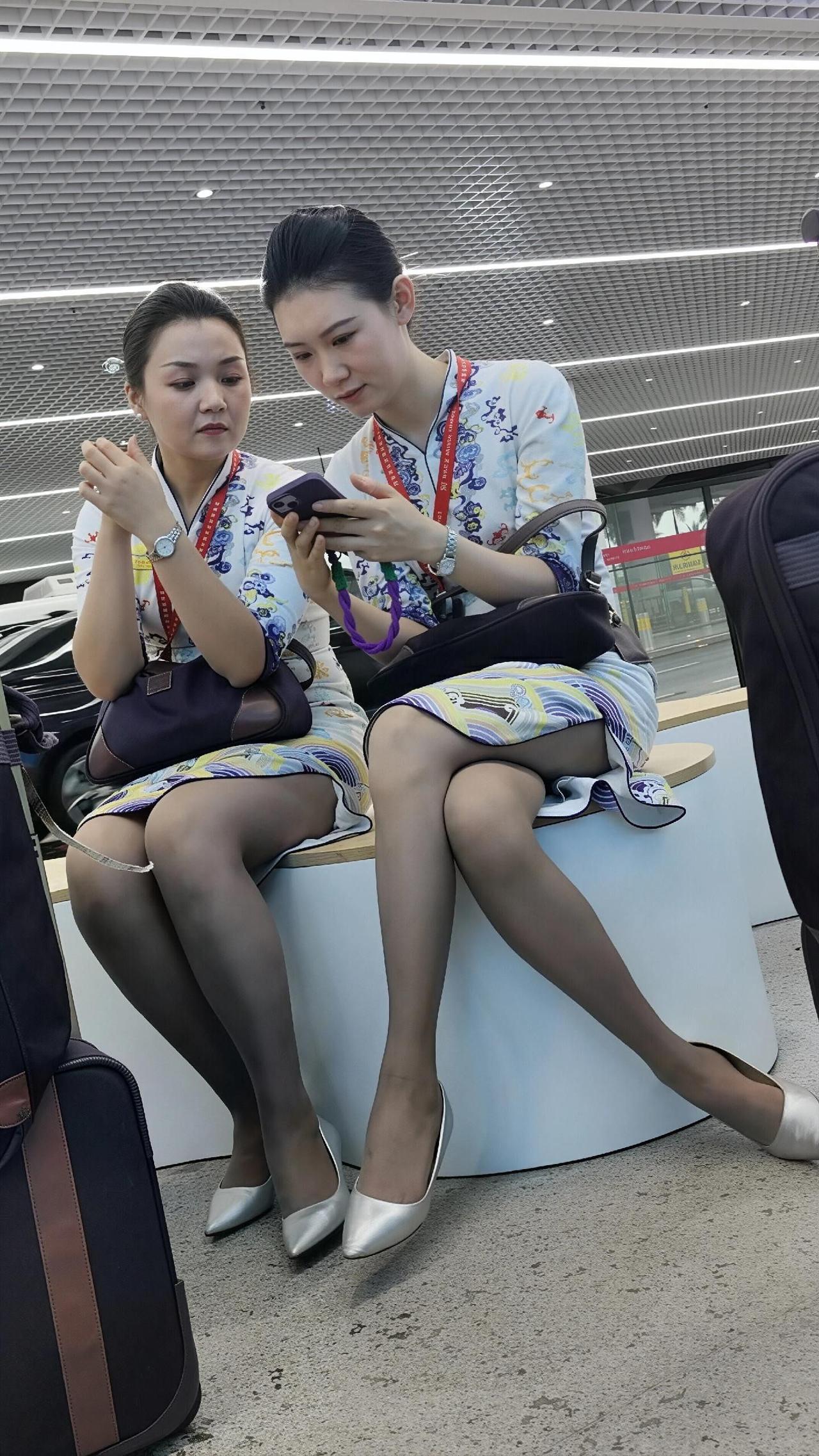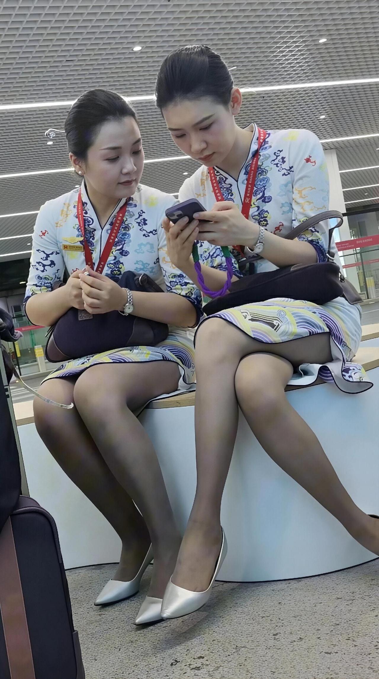 机场候机室,闺蜜相伴,时尚穿搭,手机相伴,轻松等待
