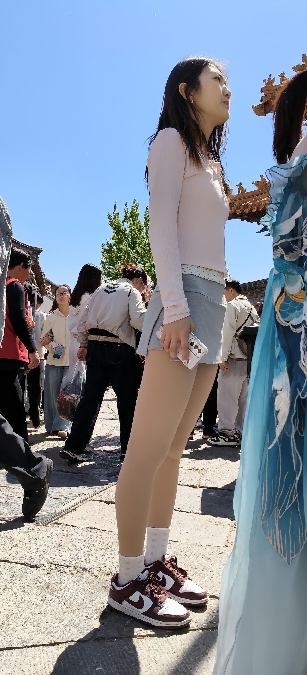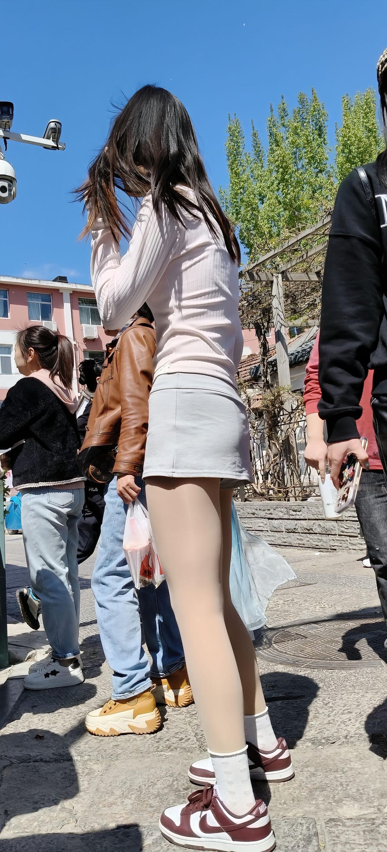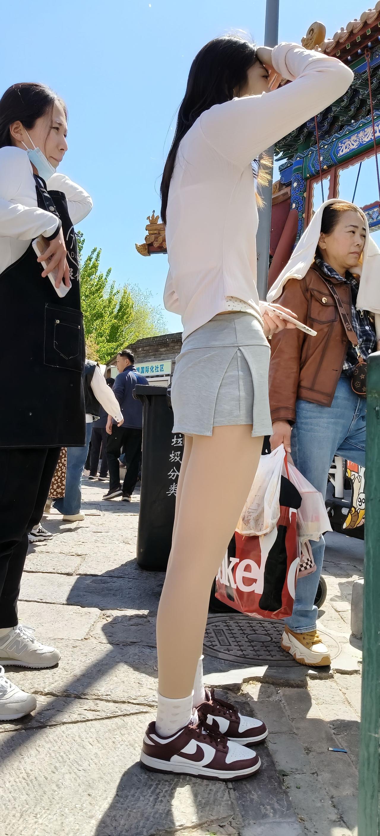 阳光明媚的一天,两位美女在街头享受美食,背景是热闹的市集。