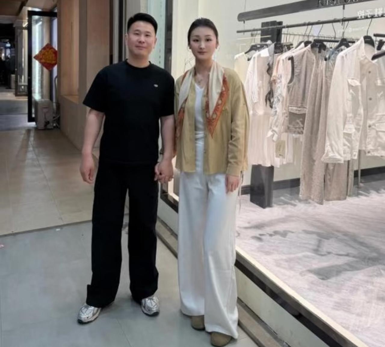 唯一美中不足的是,男方个头不太高,两口子站在一起看不出身高差,而且陈亚男穿的还是平底鞋。