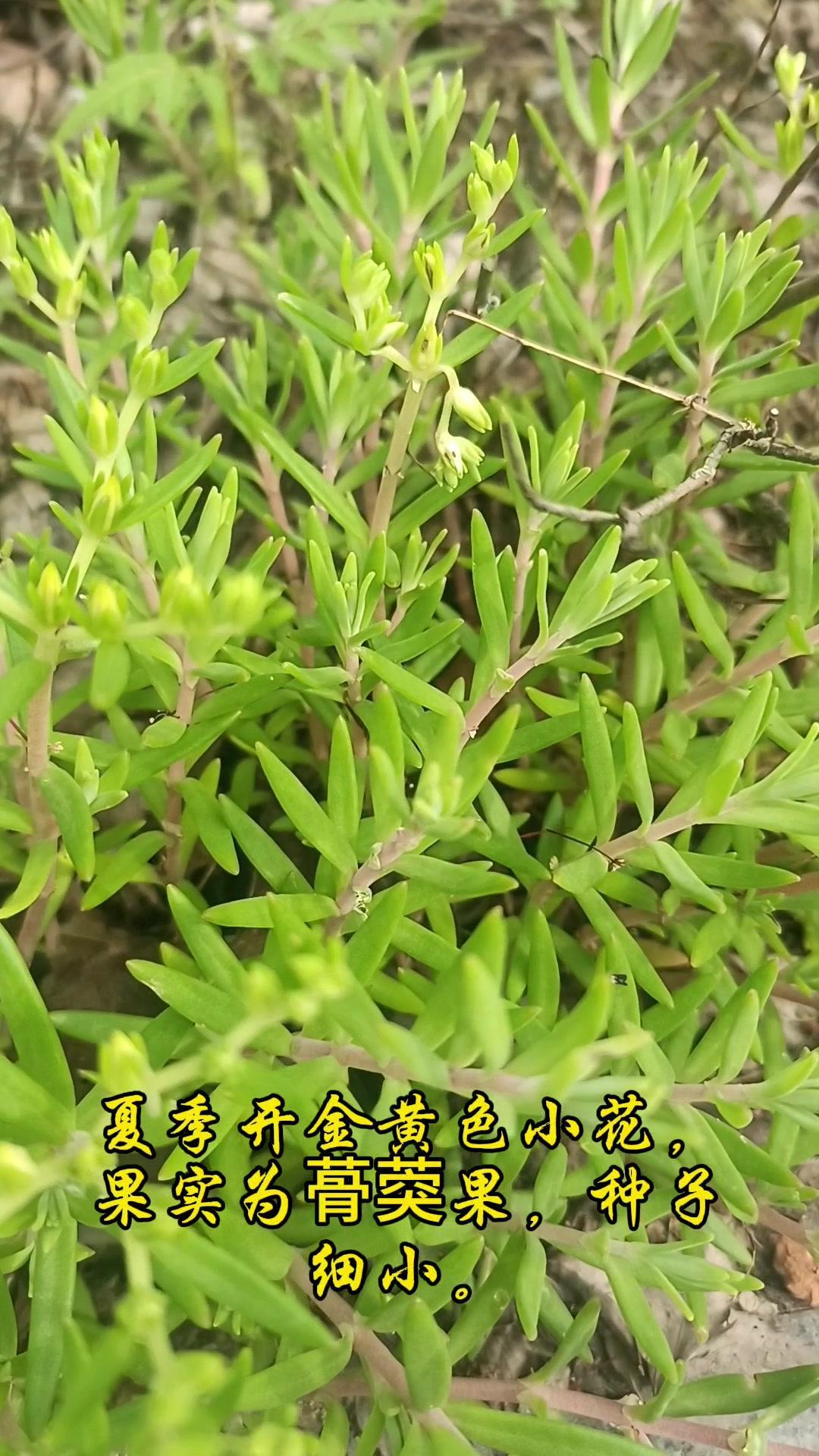 它属于景天科景天属多年生肉质草本,茎纤细、匍匐生长,节节都能生根,叶片倒披针形、3片轮生,青翠肉质。夏季开金黄色小花,果实为蓇葖果,种子细小。
