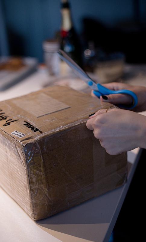一边抱着七个月的孩子一边拿个剪刀拆快递,而且,孩子的爸爸就在旁边!让爸爸拆快递不行吗?