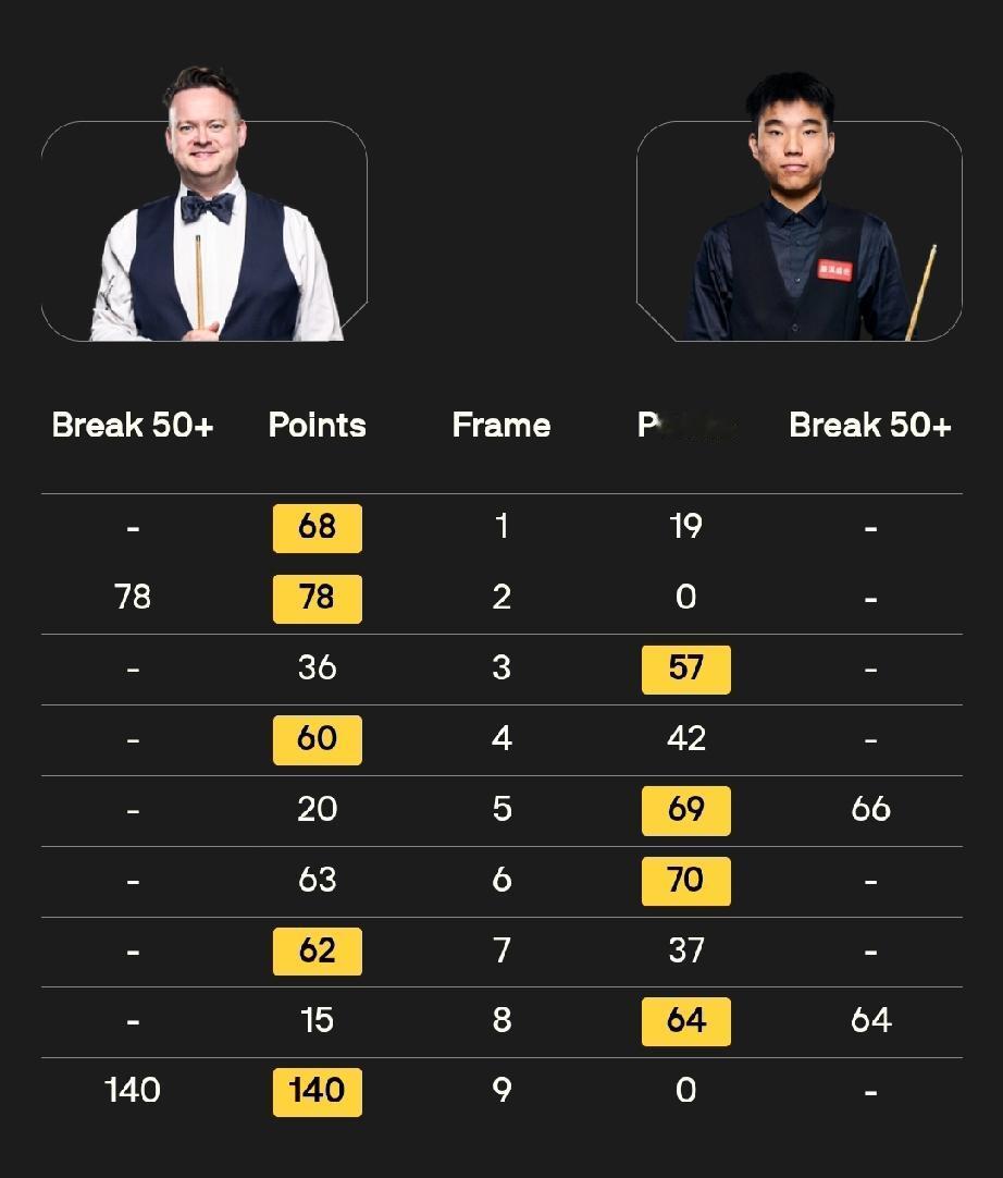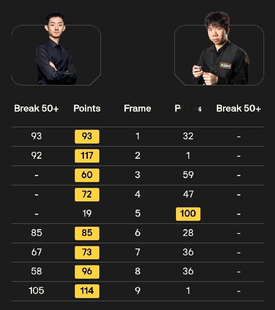吴宜泽对阵雷佩凡,第一阶段结束,吴宜泽8-1领先,比赛没有任何悬念,吴宜泽晋级16强。