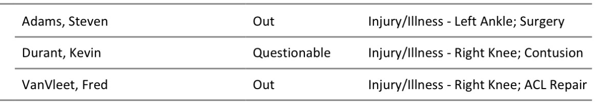 火箭更新伤病报告,杜兰特依然是出战成疑的状态。