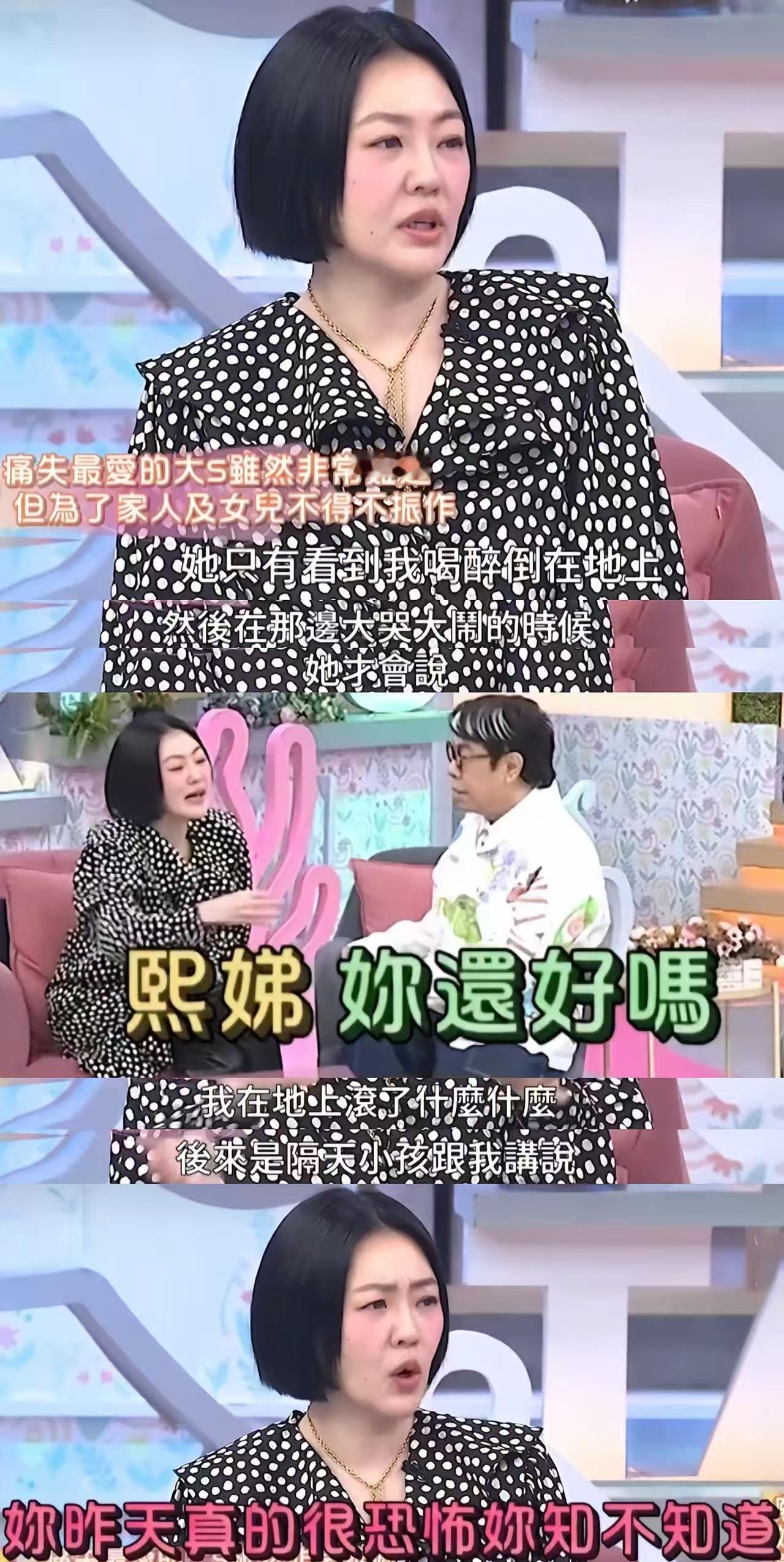 原来人在伤心绝望的时候,真的会在躺在地上或者跪在地上,她的状态确实不适合主持,思维慢,口齿不清,说话有点大舌头,感觉是长期酗酒引起的。