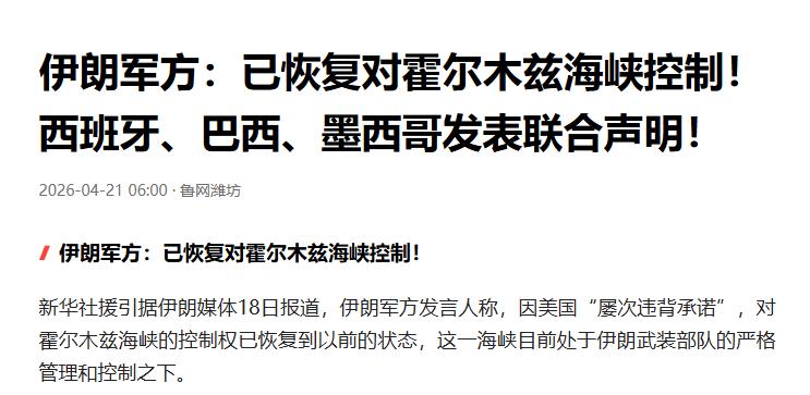 这意味着伊朗依然牢牢掌握着海峡的实际控制权,只是想通过单方面让步换取美方对等回应,为谈判创造条件。